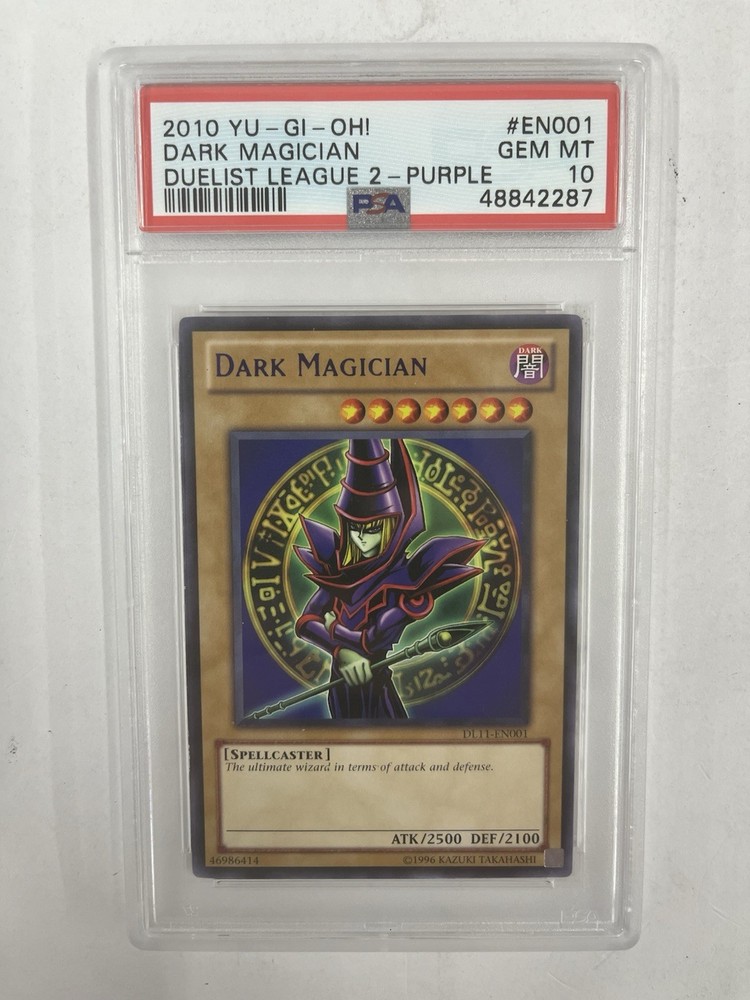 Yu-Gi-Oh! EN001 Dark Magician Duelist League 2-Purple RARE PSA 10. Condition is Graded. Shipped with USPS Ground Advantage....