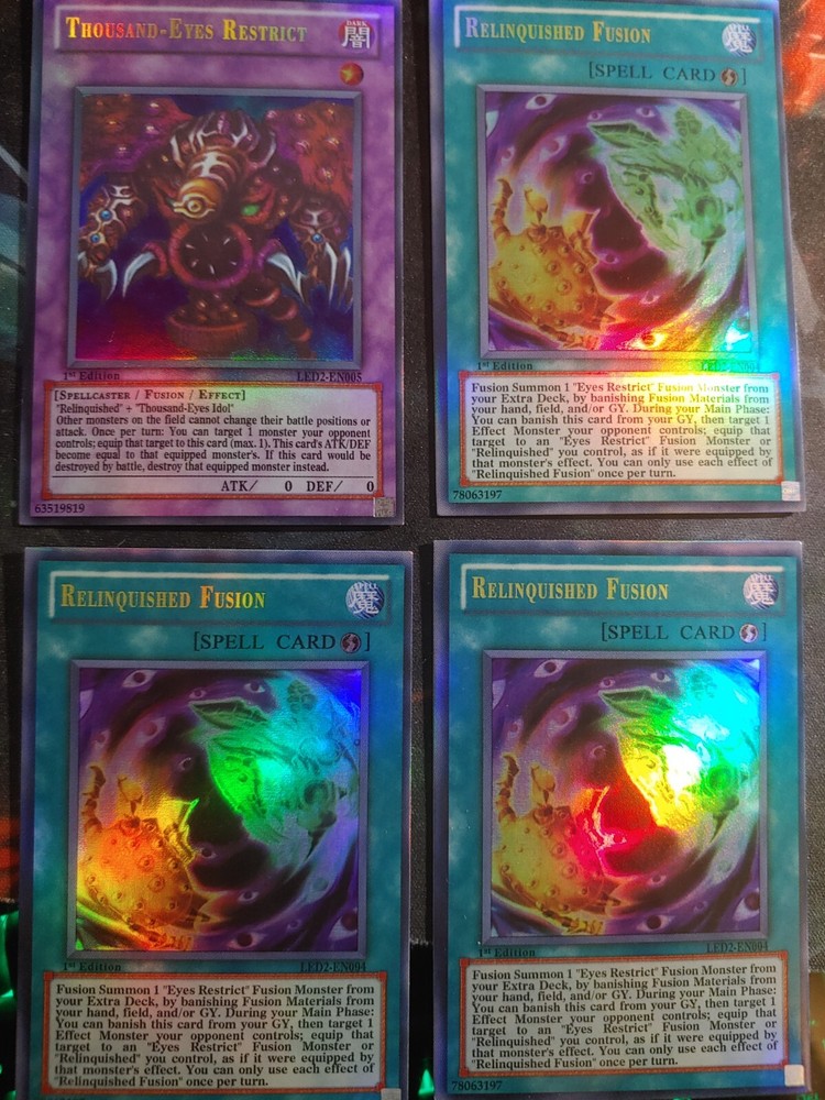 Thousand Eyes Fusion x3 & Restrict Set - Ultra Rare You get all the cards in the photos. These cards are fan-made original cards. They can't be used in official tournaments. For collection purposes and casual play only. Free Shipping via standard envelope. No tracking. Please message us with any questions. Thank you