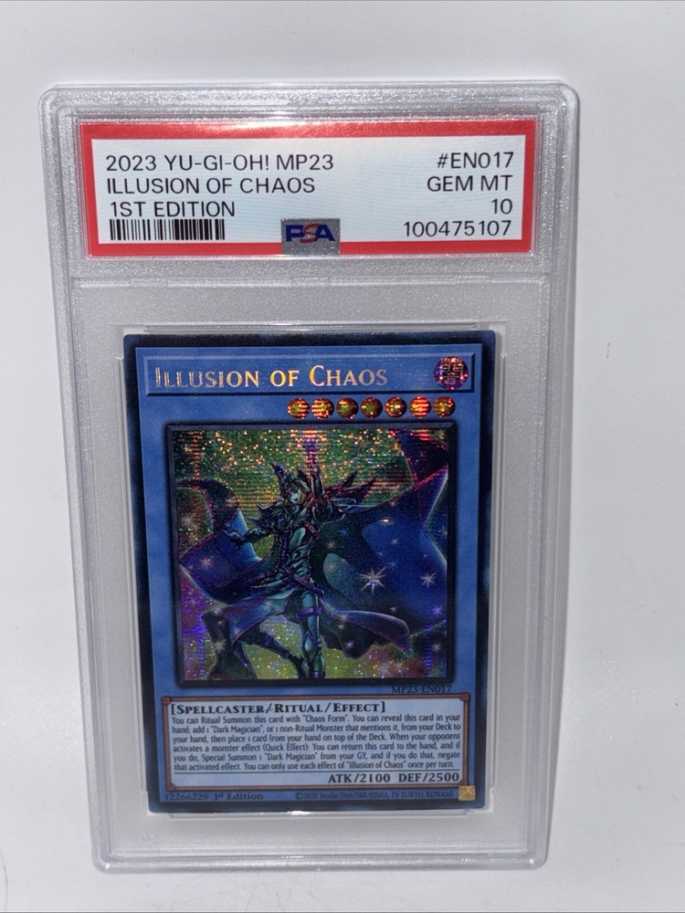 This card is a game-changer for any Yu-Gi-Oh! fan! The Illusion of Chaos looks stunning with its prismatic foil, making it a standout in any deck or collection. As a 1st Edition from the 25th Anniversary Tin, it’s both rare and powerful, perfect for boosting spellcaster strategies. The quality is top-notch, and the artwork pops—definitely worth adding to your TCG arsenal. Whether you’re dueling or collecting, this card delivers!