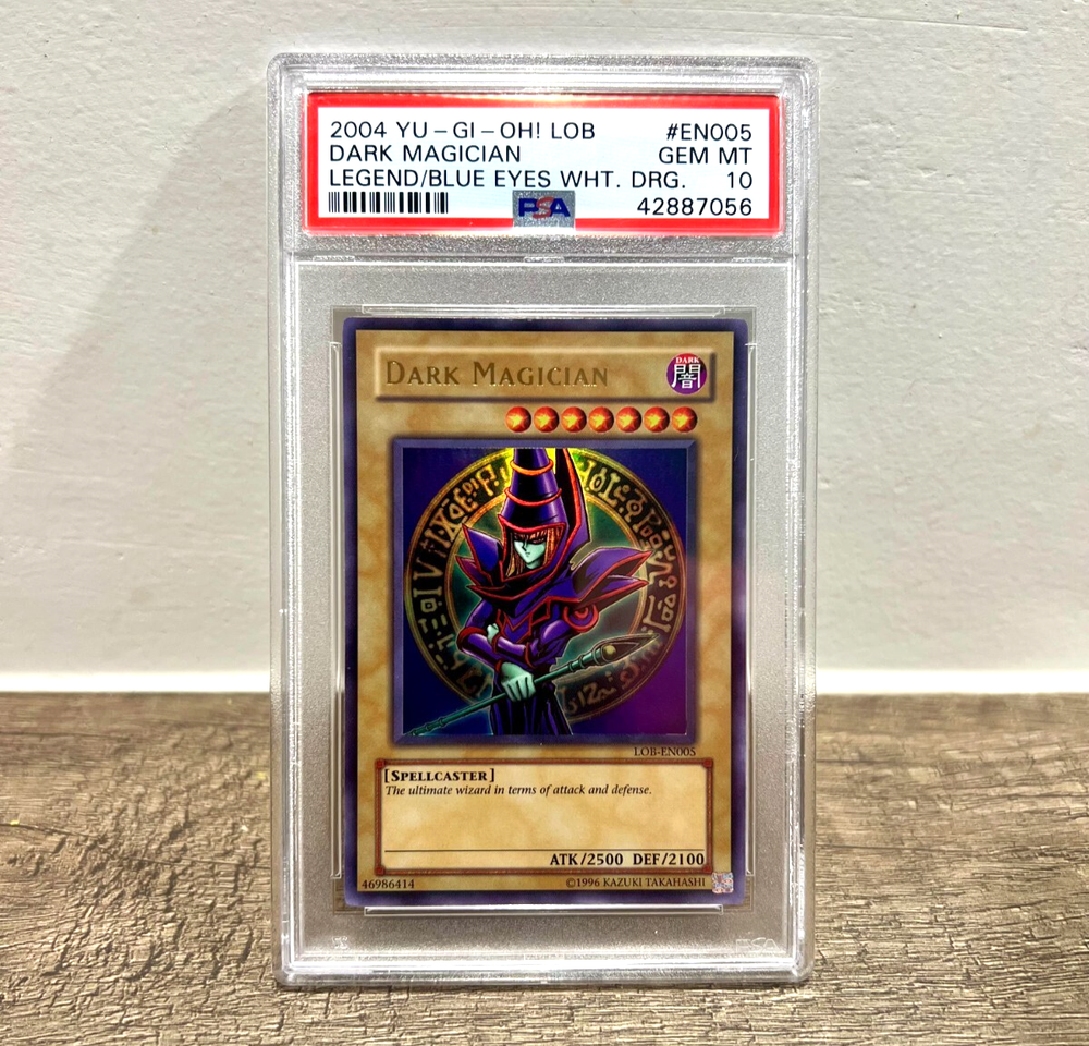 Population: 8 Set Name: Legend of Blue Eyes White Dragon Card Name: Dark Magician Set Number and prefix: LOB-EN005 The original 2004 LOB - ENXXX cards were only available in Master Collection Vol. 1 and Forbidden Legacy 1 (only one booster pack per blister) thus the low population despite the popularity of this card.