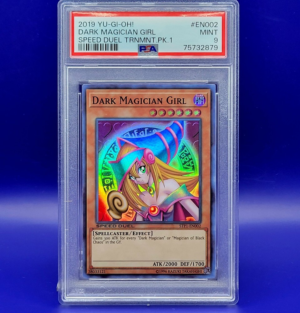 YuGiOh - PSA 9 - Dark Magician Girl 2019 Speed Duel Tournament Pack 1 STP1-EN002. Very nice card for collectors! Feel free to ask me and questions/concerns about the card. Free Shipping!!
