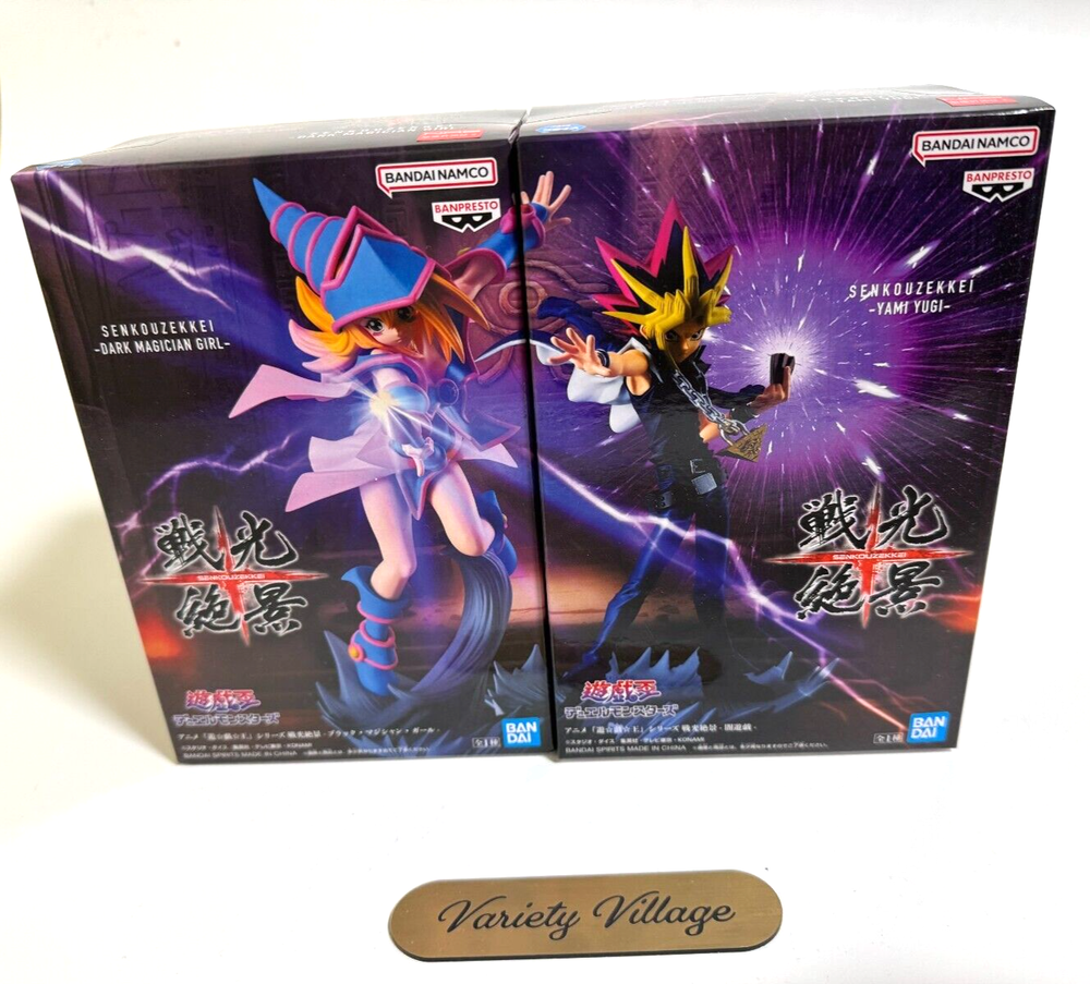 Absolutely love this Yami Yugi and Dark Magician Girl set! The details are stunning, especially the intricate sculpt and vibrant colors. Even though the outer box had minor scuffs, the figures inside are flawless. They stand around 15cm tall and feel solid—great quality for any Yu-Gi-Oh! fan. Perfect for display!