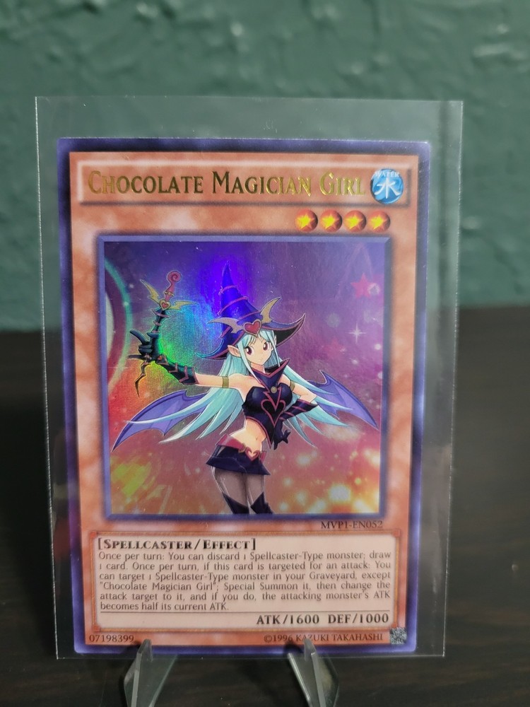 | Card Text | Once per turn: You can discard 1 Spellcaster-Type monster; draw 1 card. Once per turn, if this card is targeted for an attack: You can target 1 Spellcaster-Type monster in your Graveyard, except "Chocolate Magician Girl"; Special Summon it, then change the attack target to it, and if you do, the attacking monster's ATK becomes half its current ATK. |