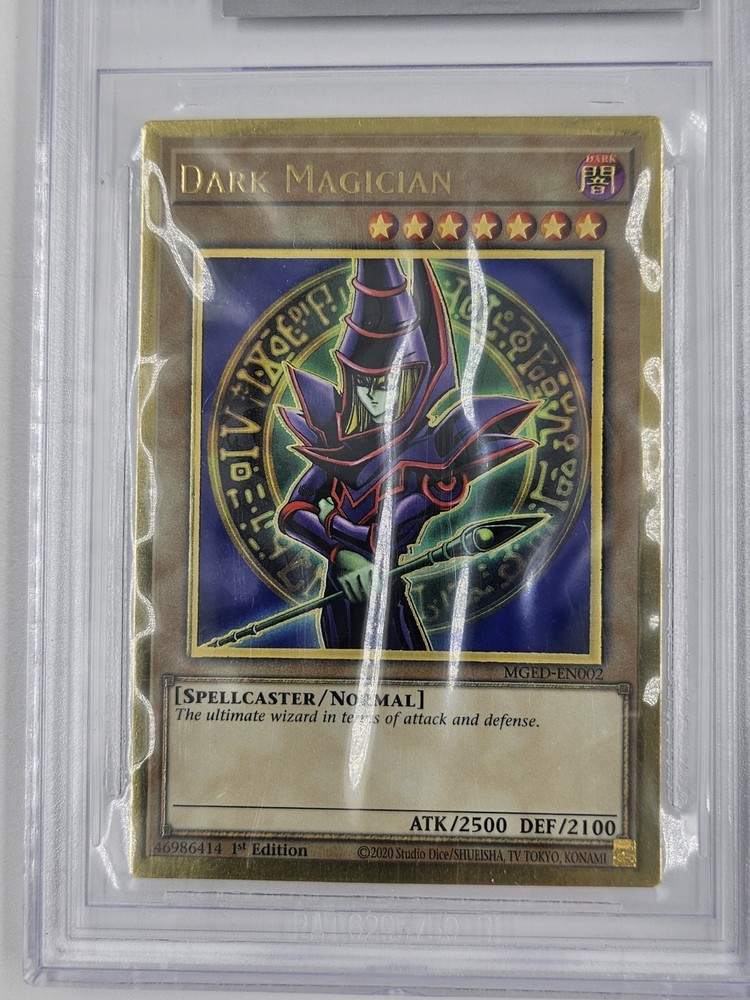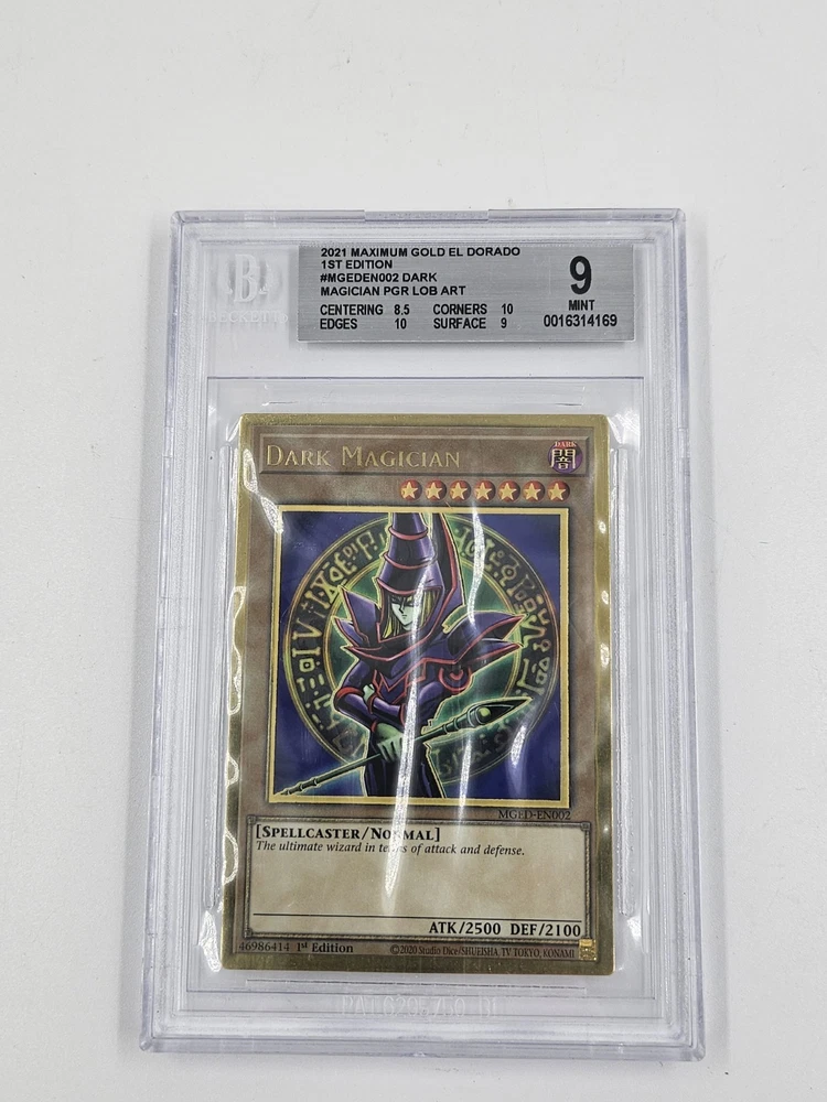 Will come as pictured. Fast shipping. The product is a Yu-Gi-Oh! TCG Dark Magician card from the set "- Yugi -" with a darkness attribute. It is a secret rare card with a limited edition feature, manufactured by Beckett. This highly sought-after card is graded as a 9 Mint by Beckett, ensuring its pristine condition and value among collectors. Dark Magician is a powerful and iconic card in the Yu-Gi-Oh! TCG, making this particular limited edition release a prized possession for fans and players alike.
