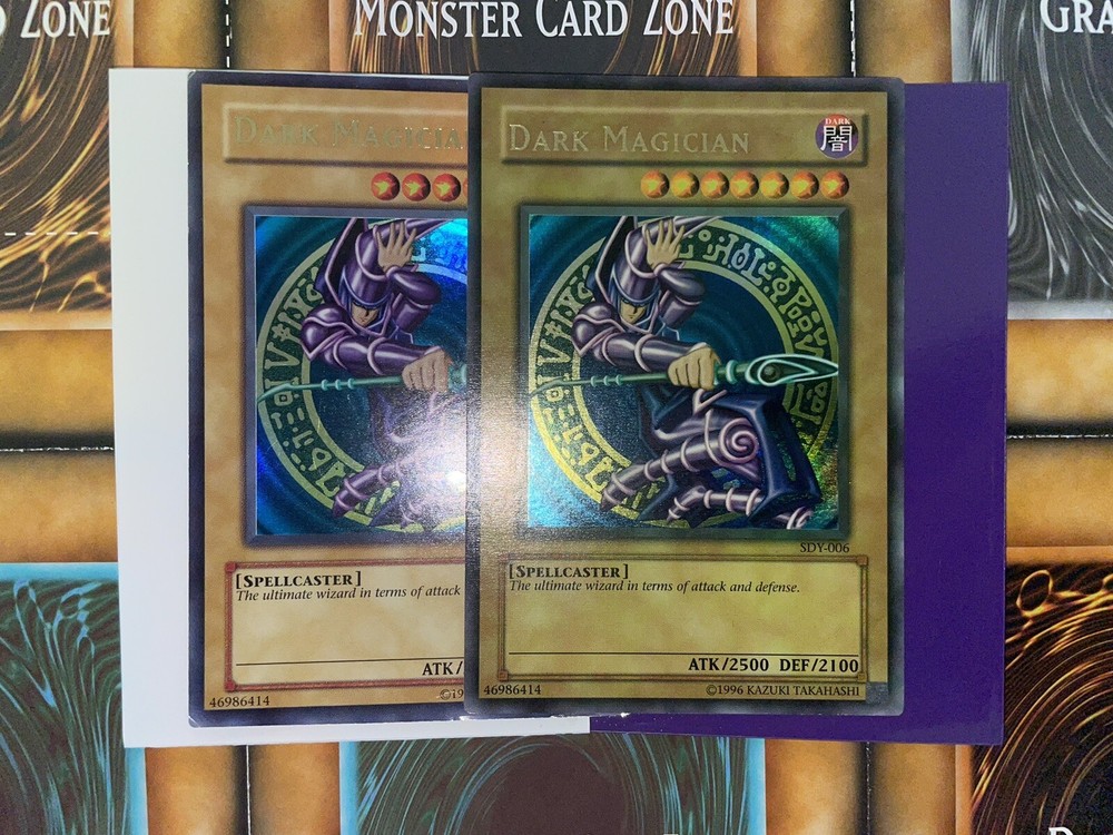 Listing: Yu-Gi-Oh! TCG Dark Magician SDY-006 Unlimited MISPRINT Faded Error - MP ONLY THE MISPRINT COPY IS FOR SALE UNDER THIS LISTING. SAMPLE IS FOR COMPARISON ONLY. THE SAMPLE IS NOT INCLUDED. Condition is MP - Moderately Played. Please refer to pictures for details. You will get the card as pictured. Please carefully look through all the pictures of the item. The card will be shipped sleeved and protected. Shipping will include tracking service. Any orders over $750 will include signature delivery as required by eBay Policy. Returns are only accepted if the item is not as described. Buyer's remorse or price fluctuation are not grounds for returns.