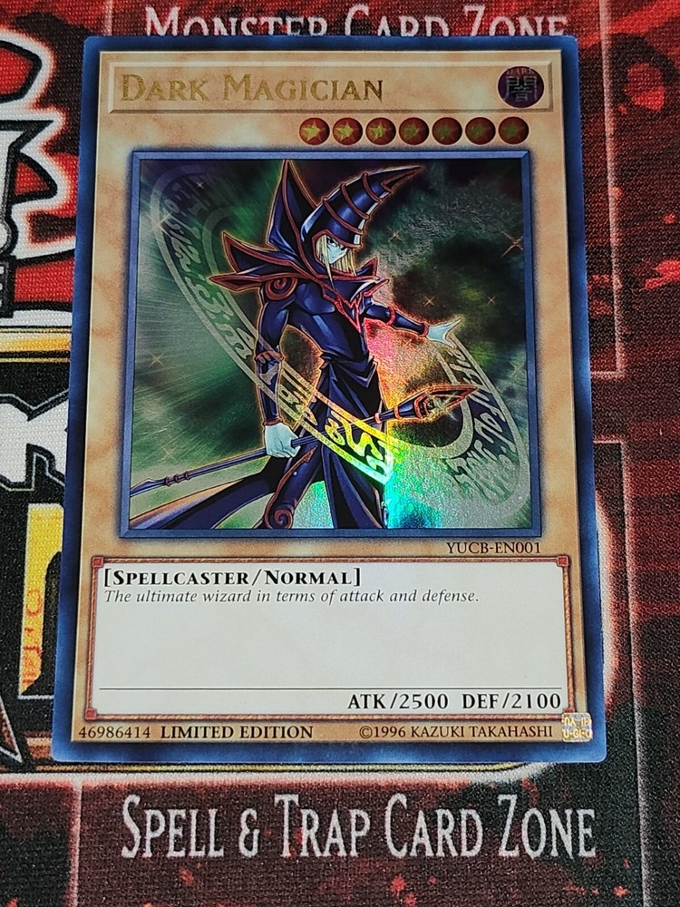 Yu-Gi-Oh! TCG Dark Magician card from the Yu-Gi-Oh Unique & Misc Promos set is an Ultra Rare Limited Edition card with 2500 Attack and 2100 Defense. It features the Creature Type Unique and belongs to the Attribute Darkness in the game. The card number is YUCB-EN001. We understand that the condition of the card is important to collectors, but rest assured that this card has been sleaved and protected. Add this powerful card to your collection today and show off your Yu-Gi-Oh! TCG prowess. Please note that this item is sold as is, with the condition shown in photos and description. We invite you to browse our full range of Yu-Gi-Oh! cards and add this rare gem to your collection today.