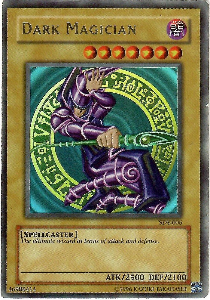 This Listing is for 1 copy of Unlimited edition Ultra Rare SDY-006 " Dark Magician ". The card is from the original Starter Deck: Yugi from 2002. Card is listed in MP condition and does show signs of wear. I do believe this is the original copy that I owned as a child so it's not doing too bad for itself all things considered. The image is a Scan of both the Front and Back of the card. Please feel free to ask any questions you may have. Be sure to check out the other cards that I have for sale to see if there's anything else you may be looking for. Purchase together to save money on shipping!!! Combine Item weight shipping: For singles or playsets when purchased at the same time if total is under $30 1 listing - $0.69 2 listings - $0.97 3 listings - $1.25 FREE Shipping on multiple purchases totaling over $30 when bought together during checkout.