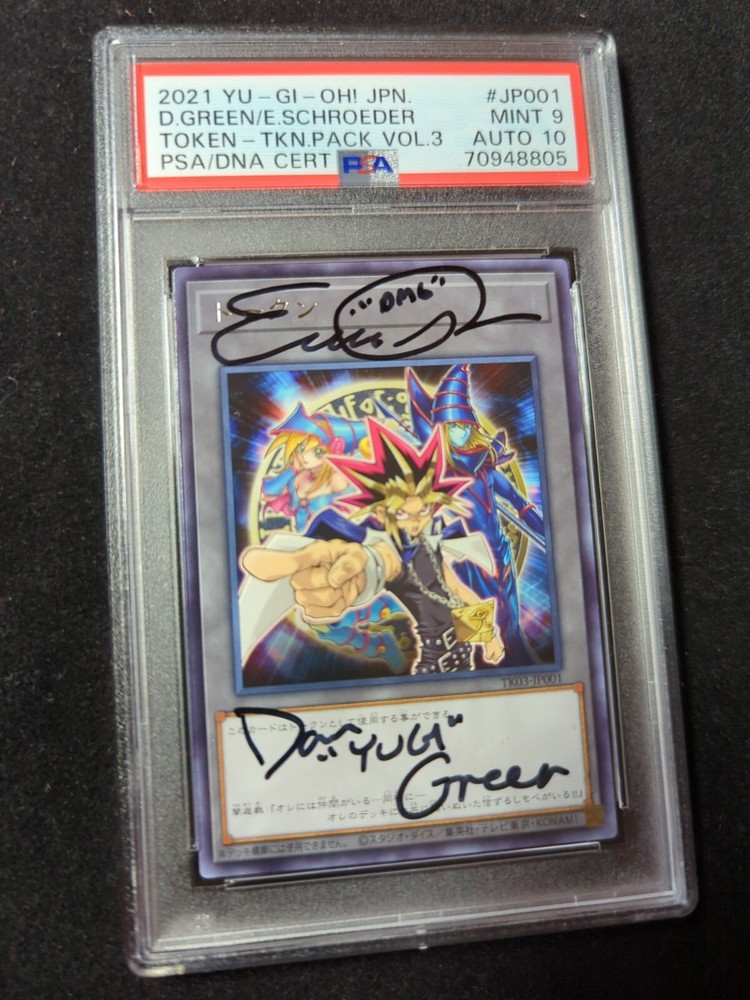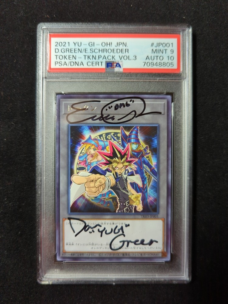 Thanks for your interest in our listing! Please read the following for important information about our sales. We ship Monday-Friday at 2PM EST. Any order placed before then will be shipped same-day. Other orders will ship-next day. Expensive orders will automatically be upgraded to priority mail shipping. We pride ourselves in fast and efficient shipping, we take your orders very seriously! Our listings with multiple quantities will have the cert # crossed out. This is not because of any foul play, but because the cert # of the card you receive may vary based on our inventory. We only sell authentic cards and slabs, and we grade 95% of the items for sale ourselves. If you want to see the exact card you will receive, please shoot us a message and we will be happy to show you the actual slab that we are sending. Again, this is for ease of listing items in quantity, and not for any misleading purpose. Items without a "best offer" option are not negotiable. We do not price match. We price our items fairly and they will sell when they sell. This item signed by Dan Green, the original voice of Yugi and others, as well as Erica Schroeder, the voice of Dark Magician Girl and many more. Please feel free to message us any additional questions.
