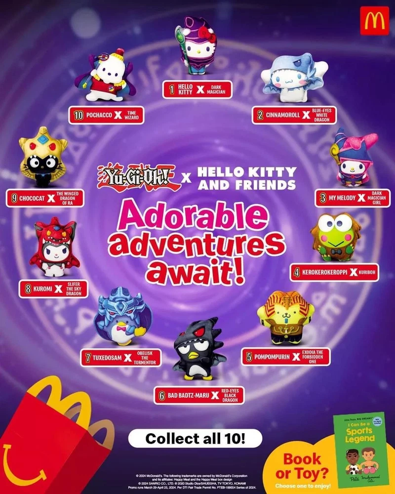 Yu-Gi-Oh! x McDonald's x Hello Kitty and Friends Limited Edition Choose Your Toy ITEM DESCRIPTION LOOT LODGE Pledge FAST FREE Shipping SAFE & SECURE Payments VISIT Our Store The Loot Lodge Pledge Buy with Confidence At Loot Lodge, your satisfaction is our top priority. With years of experience and thousands of orders fulfilled, we maintain an unwavering commitment to deliver top-notch service. Our sterling reputation for customer satisfaction speaks volumes. Rest assured, you're in good hands when you shop with us. Need assistance? We're here to help! Whether you have a question about a product, shipping, or anything else, don't hesitate to contact us through eBay's Messaging Service. Our dedicated team guarantees prompt responses and personalized assistance. Stay Connected Don't miss out on exciting updates, promotions, and new arrivals! Follow us and explore our full range of products by visiting our STORE and join our community of satisfied customers and discover why Loot Lodge is your go-to destination for all your needs. Fast Free Shipping Shipping Details We are committed to shipping within 1 business day after payment. Orders within Canada are shipped with Canada Post Orders within United States are shipped with USPS Services Loot Lodge items may be available to international customers via the eBay Global Shipping Program. Customs fees, import duties, and applicable laws are the buyer's responsibility. Please note orders will not be shipped on weekends or holidays. Easy Payments We currently accept all standard eBay methods of payment. Please ensure that payments are paid immediately at moment of purchase. Contact us if you are experiencing any issues with payments. Return Policy Please contact us before returning items for the best service possible All returns must be in their original condition and may be returned within thirty (30) days from the shipment date at the buyer's expense for a full refund minus shipping and handling costs. Items returned will incur a restocking fee of 20%. Tab 6 Content Yu-Gi-Oh! x McDonald's x Hello Kitty and Friends Limited Edition Choose Your Toy 2023 Upper Deck Game Dated Moments - Connor Bedard #1 PSA 9 Mint NHL Hockey NEW Yu-Gi-Oh! x McDonald's x Hello Kitty and Friends Limited Edition Choose Your Toy!! 10 Limited Toys with their own unique and personalized box! Collect them all before it's too late! My Melody as Dark Magician Girl Tuxedosam as Obelisk the Tormentor Kuromi as Slifer the Sky Dragon Chococat as The Winged Dragon of Ra Hello Kitty as Dark Magician Cinnamoroll as Blue-Eyes White Dragon Keroppi as Kuriboh Pompompurin as Exodia the Forbidden One Pochacco as Time Wizard Badtz-maru as Red-Eyes Black Dragon