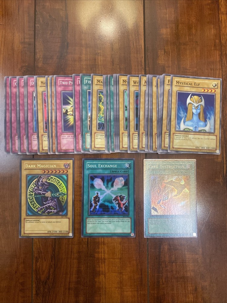 Yugioh 1996 Unlimited Starter Deck Yugi SDY Dark Magician UNUSED COMPLETE NM! **Unplayed and Complete without original box, play mat and rule book*** Dark Magician, Soul Exchange and Card Destruction included as well as all 47 common cards. All cards are in NEAR MINT condition. Very well taken care of! You will receive everything that is displayed in the pictures. Very nostalgic piece that would be a great addition to any Yugioh collection! Please see pictures for condition. Don’t hesitate to reach out if you have any questions or concerns. No lowball offers please. All my cards are 1000% authentic. See my other items for more amazing Pokemon and Yugioh cards!