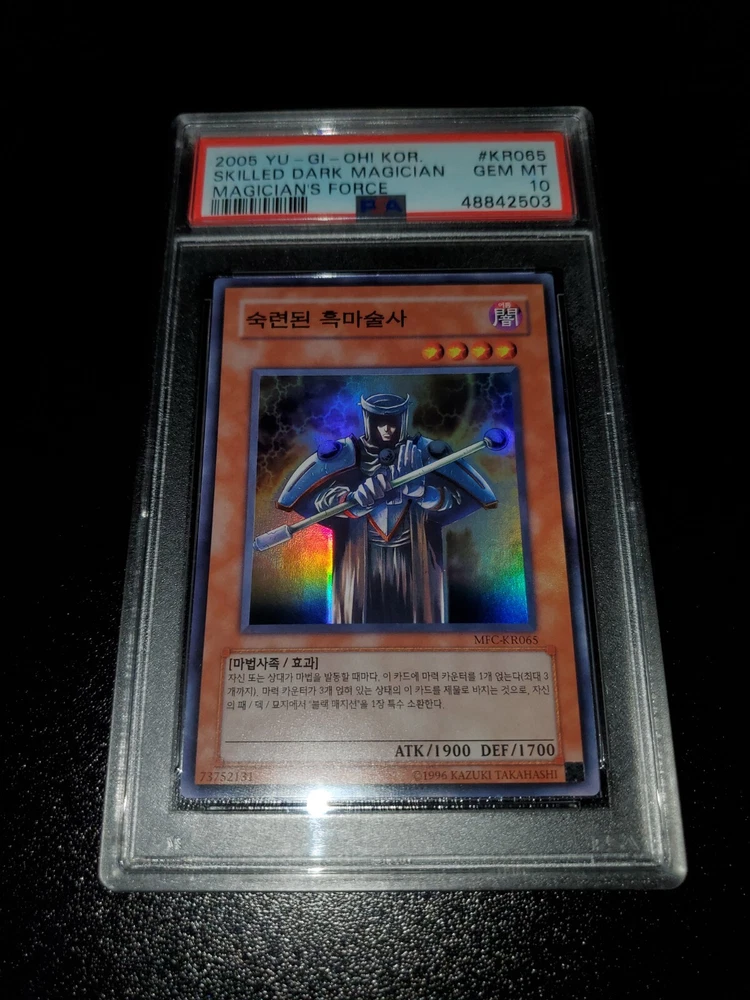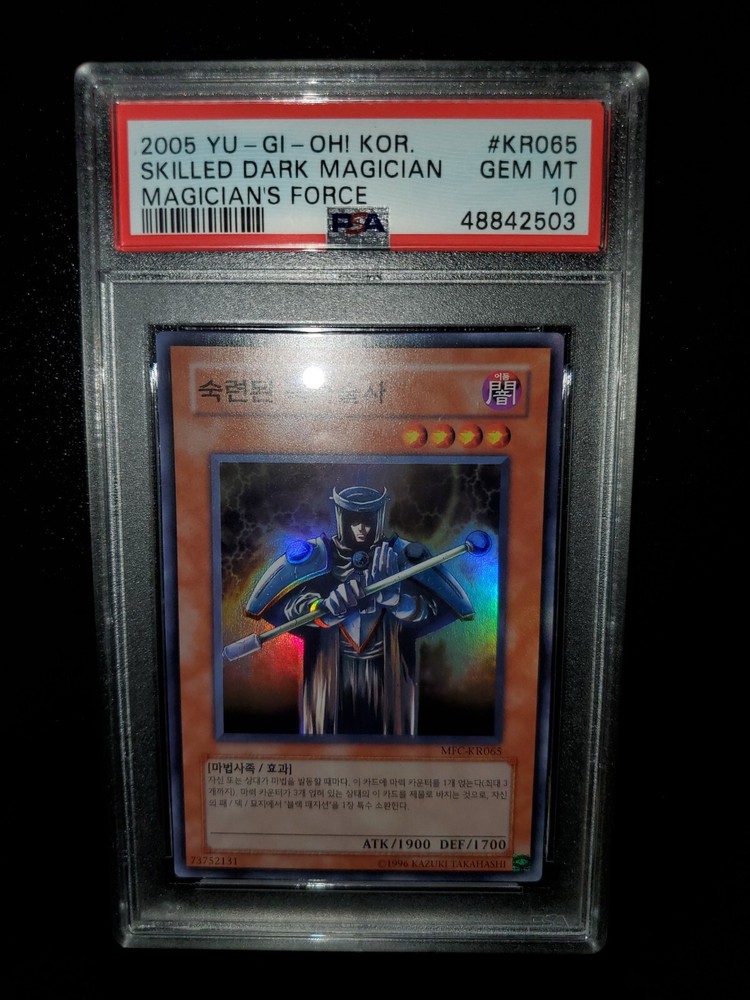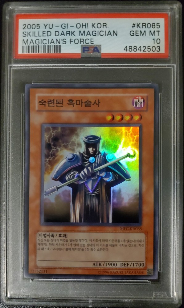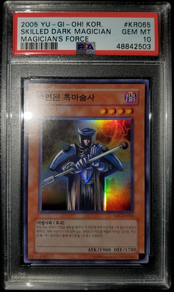 Yugioh 2005 Skilled Dark Magician MFC-KR065 Korean PSA 10 Will ship safely & securely. Slab is fitted tight and firmly in a perfect fit plastic sleeve. Placed in small 4x6 bubble mailer that will be sandwiched in between 2 large cuts of cardboard. Further encased in a larger brighter 6x10 bubble mailer to ensure perfect protection during shipment and to retain visibility to USPS workers reducing the possibility of missing packages. As a long time seller on eBay, I want every order placed with me to arrive timely and safely. You are entrusting me with your hard earned money and I will not only meet, but surpass your trusted expectations. Feel free to message for further pictures or questions.