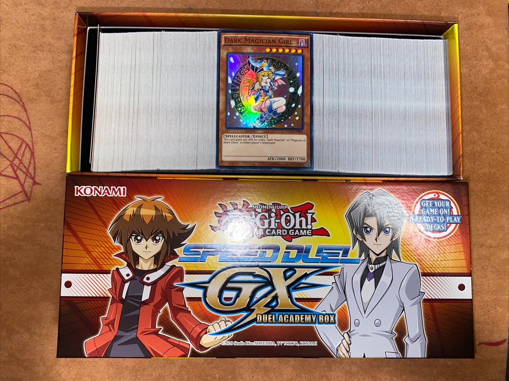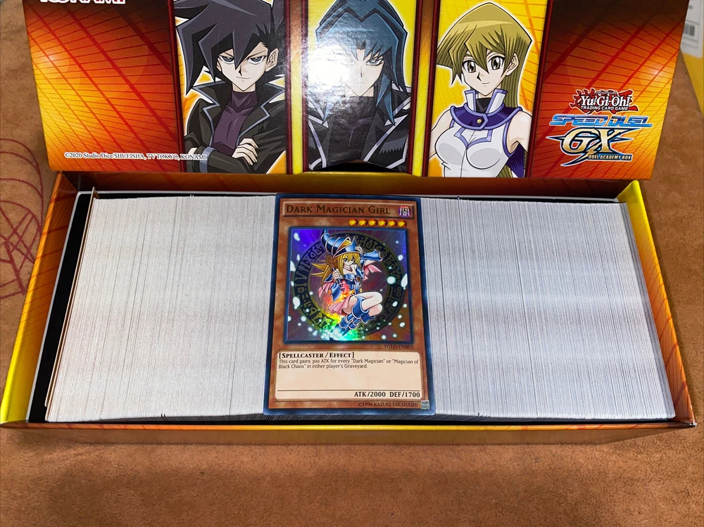 ** 600 CARD YUGIOH COLLECTION ** YOU WILL RECEIVE 600 RANDOM YUGIOH COMMON/RARE CARDS IN THIS COLLECTION AND ONE OF THOSE CARDS WILL BE: π₯DARK MAGICIAN GIRL YGLD-ENB03 ULTRA RARE HOLOFOIL WILL BE SHIPPED IN A SPEED DUEL GX: DUEL ACADEMY STORAGE BOX GREAT WAY TO START OUT ONE OF YOUR OWN OR AN AWESOME WAY TO GIVE A GIFT TO A NEW DUELIST! THERE MAY BE DUPLICATES, CARDS RANGE FROM NEWEST SETS TO THE OLDER SETS ALL CARDS ARE IN MINT / NEAR MINT CONDITION AND CAN BE USED IN A YUGIOH DUEL! THERE WILL BE MANY POWERFUL AND MOST OF ALL FUN CARDS TO PLAY WITH ALL OF OUR LOTS HAVE FIRST CLASS SHIPPING WITH TRACKING INFORMATION! FEEL SAFE WHEN SHOPPING WITH US THANK YOU FOR SHOPPING WITH US, PLEASE CHECK OUT OUR OTHER ITEMS FOR MORE GREAT DEALS. I usually ship out the same day, if not, the next day for sure. Payment is due immediately. The faster the payment the faster i'll ship out. Questions or comments?? Feel free to contact me. I'll get back to you within 24 hours. Check out my eBay store for more Yugioh items!