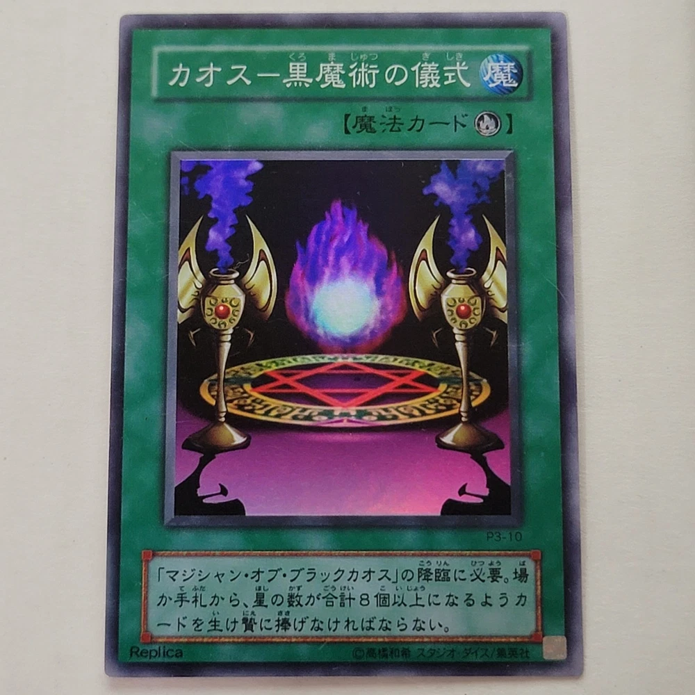 yugioh ocg japanese magician of black chaos p3-07 and ritual card black magic ritual p3-10 super rare series 2 vintage light play surface and edge wear