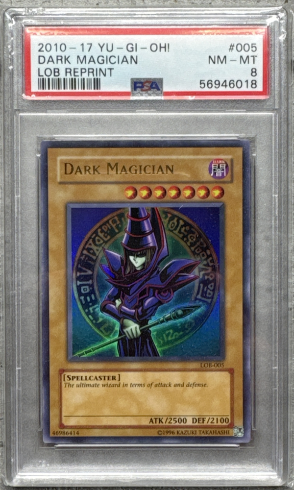 The card will come securely wrapped and packaged. A protective sleeve will come placed over the card’s case for added protection. This Yugioh Card features the iconic Dark Magician which has been graded by Professional Sports Authenticator with a PSA 8 NM-Mint rating. Manufactured by Konami in 2010, the card is numbered LOB-005 in the Legend of Blue-Eyes reprint. The card is perfect for collectors and fans of the Yu-Gi-Oh! TCG game with its original design. It is a must-have for any serious CCG Individual Cards or Collectible Card Games enthusiast.