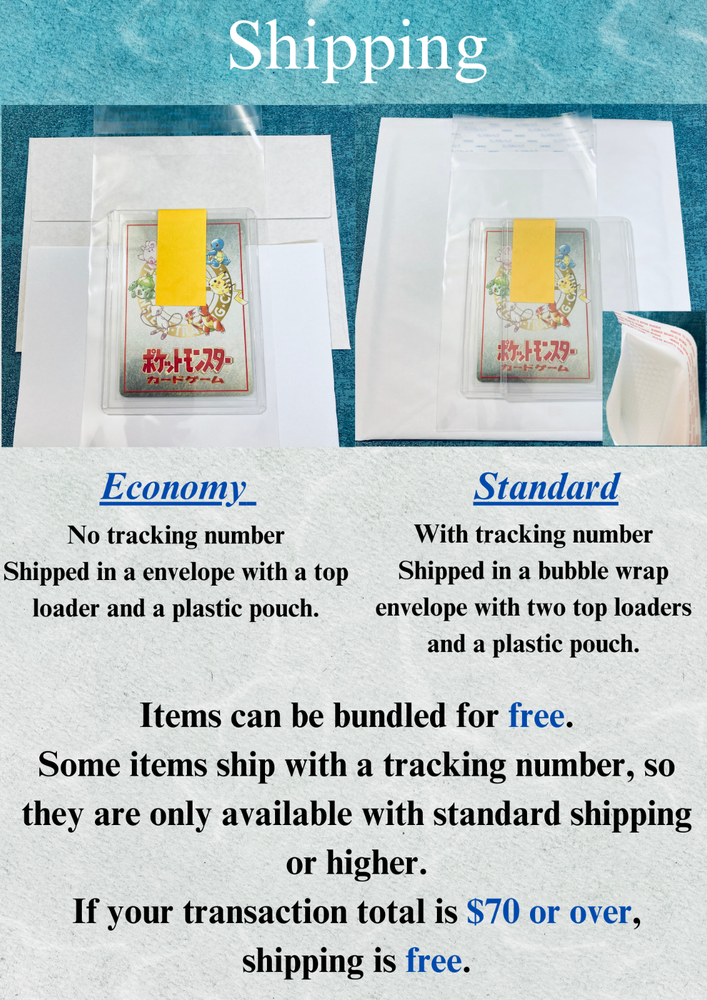 Shipping was timely and arrived safely and very well packaging. Items just as described and good pricing for the cards I was searching. And also seller does respond to messages! Thank you