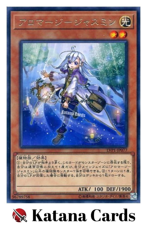 Yugioh Cards | Aromage Jasmine Rare | LVP1-JP077 Japanese C ondition Near Mint to Excellent Yugioh Cards Check our Yugioh cards here. D iscounts!!! Buy more than 2 cards in my store, Save 3 - 5% off for each cards. Yugioh Cards Check our Yugioh cards here. Discounts are applied automatically by simply adding the product to your cart! If the discount is not applied automatically due to eBay's system error, please inform us of the "Discount Error" in the message after purchasing the item. We will manually apply the discount based on the number of items purchased. S hipping We usually ship within 3 - 5 business days of receiving cleared payment. Economy Shipping - No Tracking Number - It takes 7 - 30 days after shipment. Expedited Shipping - Tracking Number - It takes 3 - 10 days after shipment. If you buy more than 2 cards and choose Expedited Shipping, please select Expedited Shipping for just 1 item. We will ship the items in one package. P ayment We can be contacted at any time through eBay messages if you have any questions, comments or product requests. We will respond to you within 24 hours and do our best to help you out! We encourage our customers to contact us with any questions or concerns! We'd like to be sure you are completely satisfied with your purchase. We do not mark merchandise values below value or mark items as gifts. US and International government regulations prohibit such behavior. I nternational Buyers - Please Note Import duties, taxes, and charges are not included in the item price or shipping cost. These charges are the buyers responsibility. Please check with your country's customs office to determine what these additional costs will be prior to bidding or buying.