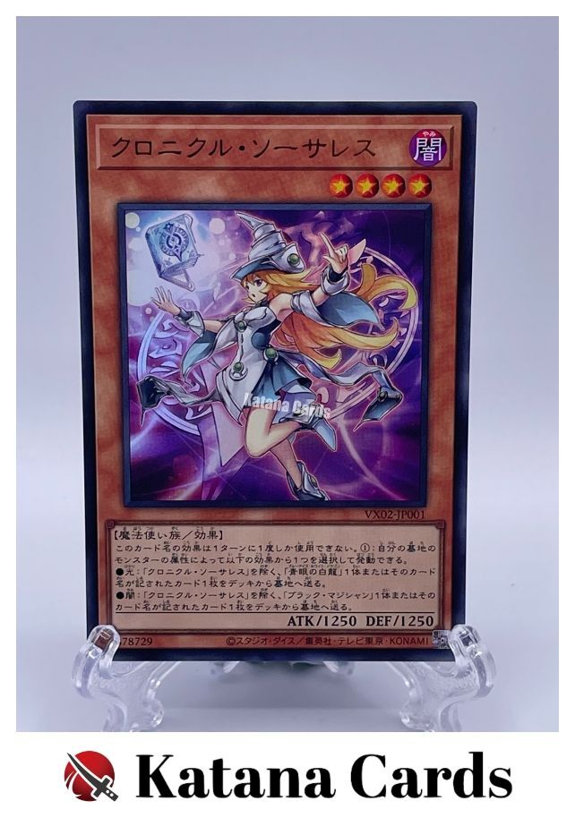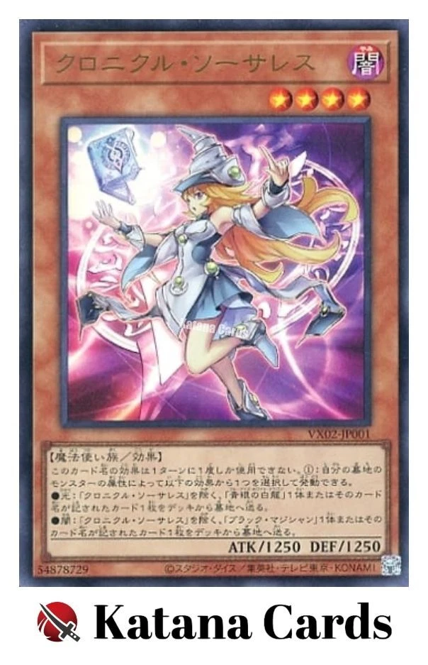 Yugioh Cards | Chronicle Sorceress Ultra Rare | VX02-JP001 Japanese C ondition Near Mint to Excellent Yugioh Cards Check our Yugioh cards here. D iscounts!!! Buy more than 3 cards in my store, Save $2 for each cards. Buy 3 cards, save $6 altogether. Buy 4 cards, save $8 altogether. Buy 5 cards, save $10 altogether and so on. Yugioh Cards Check our Yugioh cards here. Discounts are applied automatically by simply adding the product to your cart! S hipping We usually ship within 3 - 5 business days of receiving cleared payment. Economy Shipping - No Tracking Number - It takes 7 - 30 days after shipment. Expedited Shipping - Tracking Number - It takes 3 - 10 days after shipment. If you buy more than 2 cards and choose Expedited Shipping, please select Expedited Shipping for just 1 item. We will ship the items in one package. P ayment We can be contacted at any time through eBay messages if you have any questions, comments or product requests. We will respond to you within 24 hours and do our best to help you out! We encourage our customers to contact us with any questions or concerns! We'd like to be sure you are completely satisfied with your purchase. We do not mark merchandise values below value or mark items as gifts. US and International government regulations prohibit such behavior. I nternational Buyers - Please Note Import duties, taxes, and charges are not included in the item price or shipping cost. These charges are the buyers responsibility. Please check with your country's customs office to determine what these additional costs will be prior to bidding or buying.