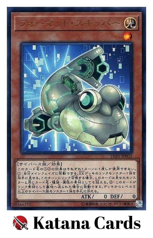 Yugioh Cards | Formud Skipper Ultra Rare | LVB1-JP002 Japanese C ondition Near Mint to Excellent Yugioh Cards Check our Yugioh cards here. D iscounts!!! Buy more than 2 cards in my store, Save 3 - 5% off for each cards. Yugioh Cards Check our Yugioh cards here. Discounts are applied automatically by simply adding the product to your cart! If the discount is not applied automatically due to eBay's system error, please inform us of the "Discount Error" in the message after purchasing the item. We will manually apply the discount based on the number of items purchased. S hipping We usually ship within 3 - 5 business days of receiving cleared payment. Economy Shipping - No Tracking Number - It takes 7 - 30 days after shipment. Expedited Shipping - Tracking Number - It takes 3 - 10 days after shipment. If you buy more than 2 cards and choose Expedited Shipping, please select Expedited Shipping for just 1 item. We will ship the items in one package. P ayment We can be contacted at any time through eBay messages if you have any questions, comments or product requests. We will respond to you within 24 hours and do our best to help you out! We encourage our customers to contact us with any questions or concerns! We'd like to be sure you are completely satisfied with your purchase. We do not mark merchandise values below value or mark items as gifts. US and International government regulations prohibit such behavior. I nternational Buyers - Please Note Import duties, taxes, and charges are not included in the item price or shipping cost. These charges are the buyers responsibility. Please check with your country's customs office to determine what these additional costs will be prior to bidding or buying.
