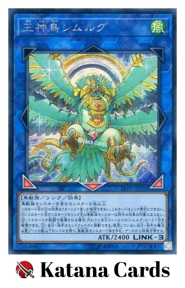 Yugioh Cards | Simorgh, Bird of Sovereignty Secret Rare | LVP3-JP026 Japanese C ondition Near Mint to Excellent Yugioh Cards Check our Yugioh cards here. D iscounts!!! Buy more than 2 cards in my store, Save 3 - 5% off for each cards. Yugioh Cards Check our Yugioh cards here. Discounts are applied automatically by simply adding the product to your cart! If the discount is not applied automatically due to eBay's system error, please inform us of the "Discount Error" in the message after purchasing the item. We will manually apply the discount based on the number of items purchased. S hipping We usually ship within 3 - 5 business days of receiving cleared payment. Economy Shipping - No Tracking Number - It takes 7 - 30 days after shipment. Expedited Shipping - Tracking Number - It takes 3 - 10 days after shipment. If you buy more than 2 cards and choose Expedited Shipping, please select Expedited Shipping for just 1 item. We will ship the items in one package. P ayment We can be contacted at any time through eBay messages if you have any questions, comments or product requests. We will respond to you within 24 hours and do our best to help you out! We encourage our customers to contact us with any questions or concerns! We'd like to be sure you are completely satisfied with your purchase. We do not mark merchandise values below value or mark items as gifts. US and International government regulations prohibit such behavior. I nternational Buyers - Please Note Import duties, taxes, and charges are not included in the item price or shipping cost. These charges are the buyers responsibility. Please check with your country's customs office to determine what these additional costs will be prior to bidding or buying.