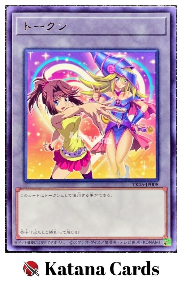 Yugioh Cards | Token (Téa and Dark Magician Girl) Rare | TK05-JP008 Japanese C ondition Near Mint to Excellent Yugioh Cards Check our Yugioh cards here. D iscounts!!! Buy more than 2 cards in my store, Save 3 - 5% off for each cards. Yugioh Cards Check our Yugioh cards here. Discounts are applied automatically by simply adding the product to your cart! If the discount is not applied automatically due to eBay's system error, please inform us of the "Discount Error" in the message after purchasing the item. We will manually apply the discount based on the number of items purchased. S hipping We usually ship within 3 - 5 business days of receiving cleared payment. Economy Shipping - No Tracking Number - It takes 7 - 30 days after shipment. Expedited Shipping - Tracking Number - It takes 3 - 10 days after shipment. If you buy more than 2 cards and choose Expedited Shipping, please select Expedited Shipping for just 1 item. We will ship the items in one package. P ayment We can be contacted at any time through eBay messages if you have any questions, comments or product requests. We will respond to you within 24 hours and do our best to help you out! We encourage our customers to contact us with any questions or concerns! We'd like to be sure you are completely satisfied with your purchase. We do not mark merchandise values below value or mark items as gifts. US and International government regulations prohibit such behavior. I nternational Buyers - Please Note Import duties, taxes, and charges are not included in the item price or shipping cost. These charges are the buyers responsibility. Please check with your country's customs office to determine what these additional costs will be prior to bidding or buying.