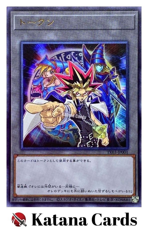 Yugioh Cards | Token Yami Yugi and The Dark Magicians Ultra Rare | TK03-JP001 Jap C ondition Near Mint to Excellent Yugioh Cards Check our Yugioh cards here. D iscounts!!! Buy more than 2 cards in my store, Save 3 - 5% off for each cards. Yugioh Cards Check our Yugioh cards here. Discounts are applied automatically by simply adding the product to your cart! If the discount is not applied automatically due to eBay's system error, please inform us of the "Discount Error" in the message after purchasing the item. We will manually apply the discount based on the number of items purchased. S hipping We usually ship within 3 - 5 business days of receiving cleared payment. Economy Shipping - No Tracking Number - It takes 7 - 30 days after shipment. Expedited Shipping - Tracking Number - It takes 3 - 10 days after shipment. If you buy more than 2 cards and choose Expedited Shipping, please select Expedited Shipping for just 1 item. We will ship the items in one package. P ayment We can be contacted at any time through eBay messages if you have any questions, comments or product requests. We will respond to you within 24 hours and do our best to help you out! We encourage our customers to contact us with any questions or concerns! We'd like to be sure you are completely satisfied with your purchase. We do not mark merchandise values below value or mark items as gifts. US and International government regulations prohibit such behavior. I nternational Buyers - Please Note Import duties, taxes, and charges are not included in the item price or shipping cost. These charges are the buyers responsibility. Please check with your country's customs office to determine what these additional costs will be prior to bidding or buying.