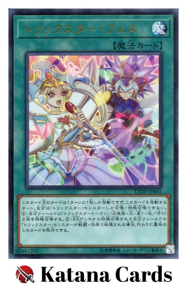 Yugioh Cards | Trickstar Festival Ultra Rare | LVDS-JPA05 Japanese C ondition Near Mint to Excellent Yugioh Cards Check our Yugioh cards here. D iscounts!!! Buy more than 2 cards in my store, Save 3 - 5% off for each cards. Yugioh Cards Check our Yugioh cards here. Discounts are applied automatically by simply adding the product to your cart! If the discount is not applied automatically due to eBay's system error, please inform us of the "Discount Error" in the message after purchasing the item. We will manually apply the discount based on the number of items purchased. S hipping We usually ship within 3 - 5 business days of receiving cleared payment. Economy Shipping - No Tracking Number - It takes 7 - 30 days after shipment. Expedited Shipping - Tracking Number - It takes 3 - 10 days after shipment. If you buy more than 2 cards and choose Expedited Shipping, please select Expedited Shipping for just 1 item. We will ship the items in one package. P ayment We can be contacted at any time through eBay messages if you have any questions, comments or product requests. We will respond to you within 24 hours and do our best to help you out! We encourage our customers to contact us with any questions or concerns! We'd like to be sure you are completely satisfied with your purchase. We do not mark merchandise values below value or mark items as gifts. US and International government regulations prohibit such behavior. I nternational Buyers - Please Note Import duties, taxes, and charges are not included in the item price or shipping cost. These charges are the buyers responsibility. Please check with your country's customs office to determine what these additional costs will be prior to bidding or buying.