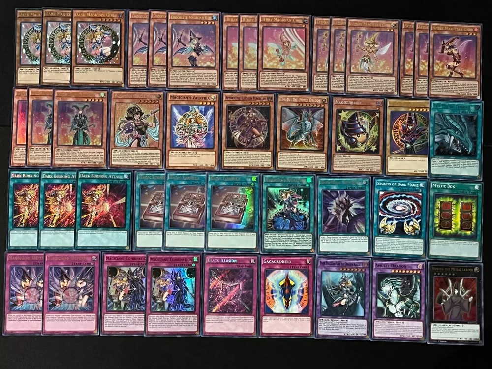 Hello all I am a New Ebay Seller!!! I am a Male Yugioh & Magic Collector!!! I aim to please so Please Please Please MSG me about an item if you are not completely Satisfied with it. Picture may have been edited due to Inventory Changes Please read description Below Below is the featured item if you have any questions please MSG me!!! Happy Bidding!!! A bonus for ordering you will also Get a Free Holo Card from my collection. It maybe Super Rare, Ultra Rare, or SECRET Rare!!! You are bidding on: MONSTERS: 3X DARK MAGICIAN GIRL (ULTRA RARE) 3X CHOCOLATE MAGICIAN GIRL (ULTRA RARE) 3X BERRY MAGICIAN GIRL (ULTRA RARE) 3X LEMON MAGICIAN GIRL (ULTRA RARE) 3X KIWI MAGICIAN GIRL (ULTRA RARE) 3X APPLE MAGICIAN GIRL (ULTRA RARE) 1X PALLADIUM ORACLE MANA (PRISMATIC SECRET RARE) 1X MAGICIAN'S VALYRIA (COMMON) 1X APPRENTICE ILLUSION MAGICIAN (COLOR ULTRA RARE) 1X TIMAEUS THE UNITED DRAGON (PRISMATIC SECRET RARE) 1X MAGIKURIBOH (PRISMATIC SECRET RARE) 1X DARK MAGICIAN (ULTRA RARE) SPELLS: 1X THE EYE OF TIMAEUS (COLOR ULTRA RARE) 3X DARK BURNING ATTACK (SECRET RARE) 3X MAGIC FORMULA (ULTRA RARE) 1X MAGICIAN'S SALVATION (ULTRA RARE) 1X DARK MAGIC TWIN BURST (ULTRA RARE) 1X SECRETS OF DARK MAGIC (COMMON) 1X MYSTIC BOC (COMMON) TRAPS: 2X MAGICIAN'S DEFENSE (ULTRA RARE) 2X MAGICIANS' COMBIMATION (COLOR ULTRA RARE) 1X BLACK ILLUSION (SECRET RARE) 1X GAGAGASHIELD (COMMON) EXTRA DECK: 1X DARK MAGICIAN GIRL THE DRAGON KNIGHT 1X AMULET DRAGON (COLOR ULTRA RARE) 1 NORITO THE MORAL LEADER