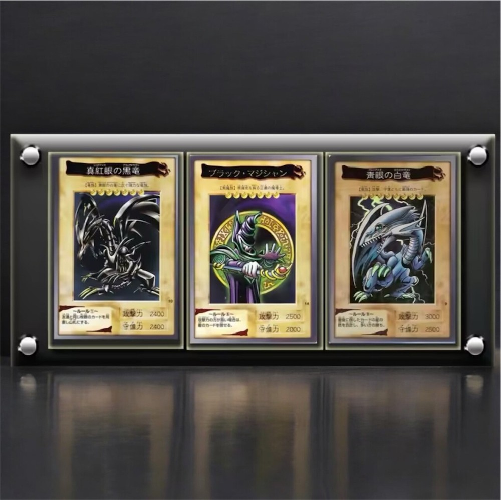 Bring legendary monsters to your collection with this 3-piece DIY BANDAI Card Set! Featuring Blue-Eyes White Dragon, Dark Magician, and Red-Eyes Black Dragon , each card is styled in a premium vintage anime design with Bandai -toned details โperfect for collectors, fans, and nostalgic duelists. ๐ Product Features: โ๏ธ Includes 3 Iconic Characters โ Blue-Eyes, Dark Magician & Red-Eyes in one set. โ๏ธ Premium Display Finish โ Bandai style with vibrant colors and clean detailing. โ๏ธ High-Quality Print โ Ideal for display, gifting, or anime-themed setups. โ๏ธ Japanese Size (Non-Playable) โ Great for framing, decorating, or collecting. โ๏ธ Inspired by Classic Anime Artwork โ Perfect for longtime fans of the series. โก Great For: โ๏ธ Yu-Gi-Oh! anime collectors & fans โ๏ธ Gift sets for TCG lovers & anime merch fans โ๏ธ Shelf displays, framed collages, or fan rooms ๐ Why Shop With Us? โ Fast & Reliable Shipping โ Trusted Seller for Anime Collectibles โ 100% Satisfaction Guaranteed All cards are DIY inspired by the original BANDAI cards used in the yugioh manga handcrafted with premium quality!