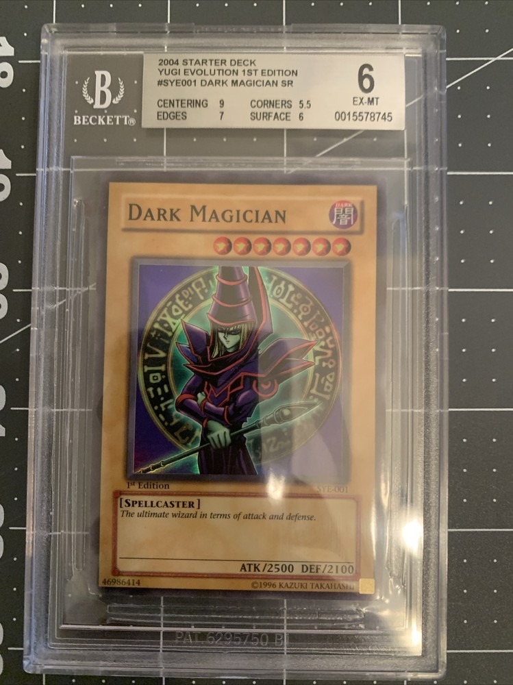 This Yugioh card features the iconic Dark Magician character with a stunning design and 1st edition mark. It has undergone professional grading by Beckett Grading Services (BGS) with a grade of 6, indicating an excellent to mint condition. The card belongs to the Yu-Gi-Oh! TCG game and falls under the category of CCG individual cards in the Toys & Hobbies and Collectible Card Games sections of eBay. The color of the card is Darkness, adding to its mysterious appeal. With its unique features and rarity, this Dark Magician card is a must-have for any collector or fan of the franchise.