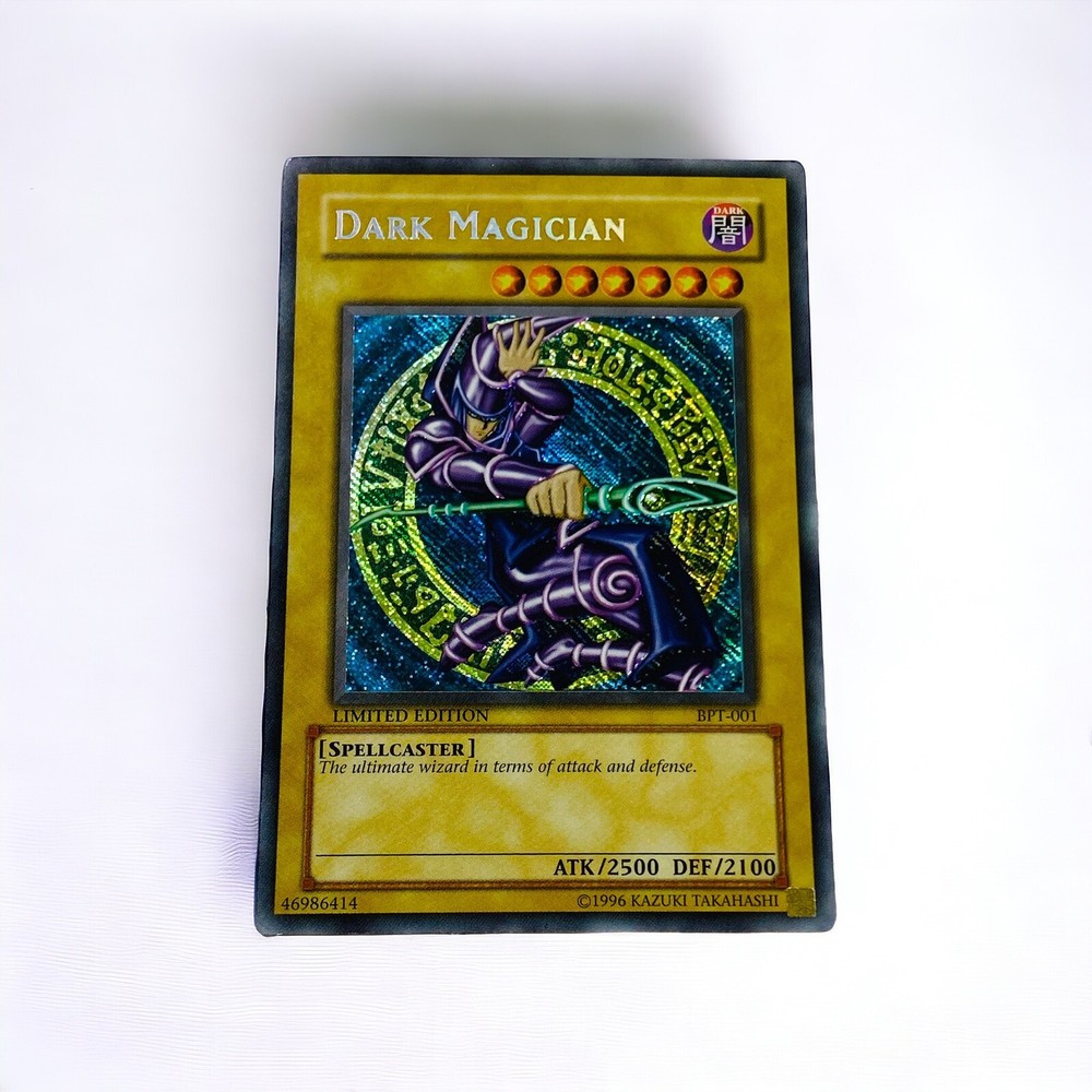 Pre-owned & Used Yu-hi-oh! Dark Magician - 2002 Collectors Tin (BPT) Product Details The ultimate wizard in terms of attack and defense. Number:BPT-001 Rarity:Secret Rare Attribute Monster Type/Card Type:DARK Spellcaster/Normal Monster Level:7 A / D:2500 / 2100 Artist:Spellcaster