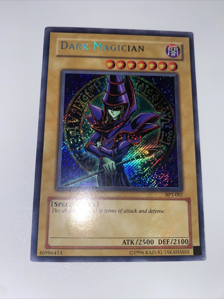 Yugioh Dark Magician BPT-007 Secret Rare Promo Tin Vintage MP Please see pictures for condition. Don’t hesitate to reach out if you have any questions or concerns. No lowball offers please. All my cards are 1000% authentic. See my other items for more amazing Pokemon and Yugioh cards!