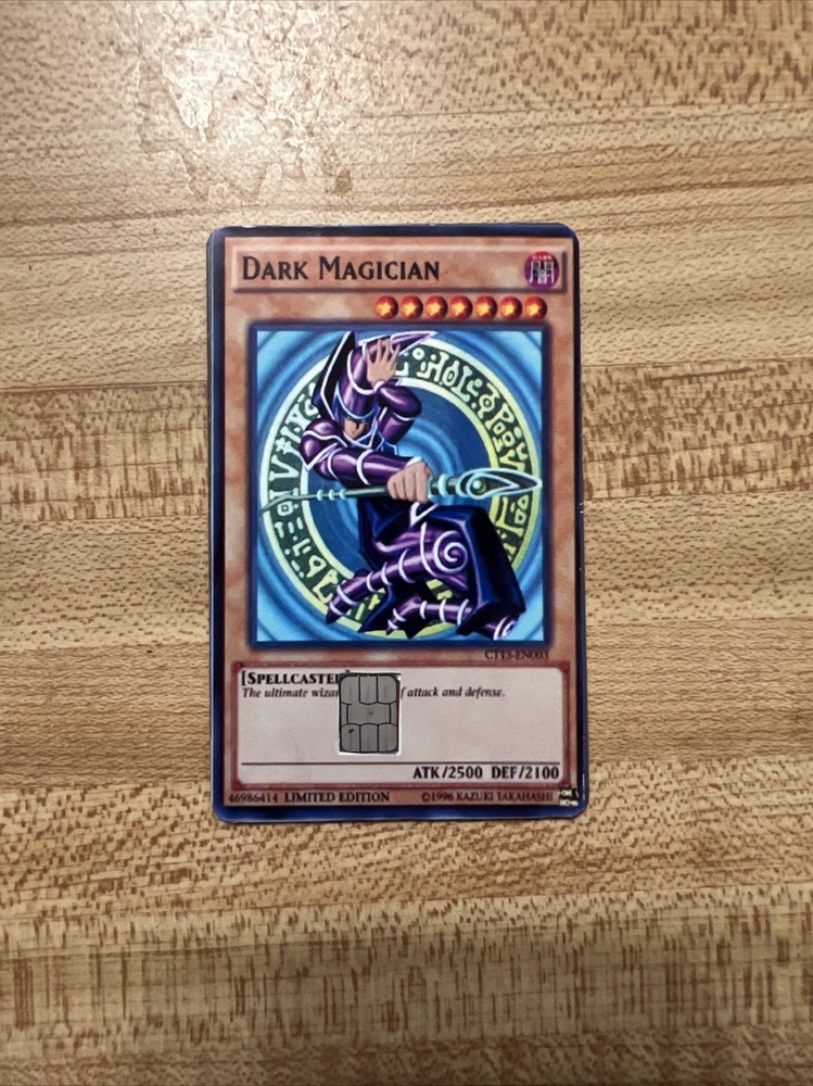 Yugioh Dark Magician Card - Credit Card Skin • Fits any debit/credit card • Package comes with 2 skins (Corners and Chip Hole silhouette must be cut by the buyer) • Feel free to ask for customs...