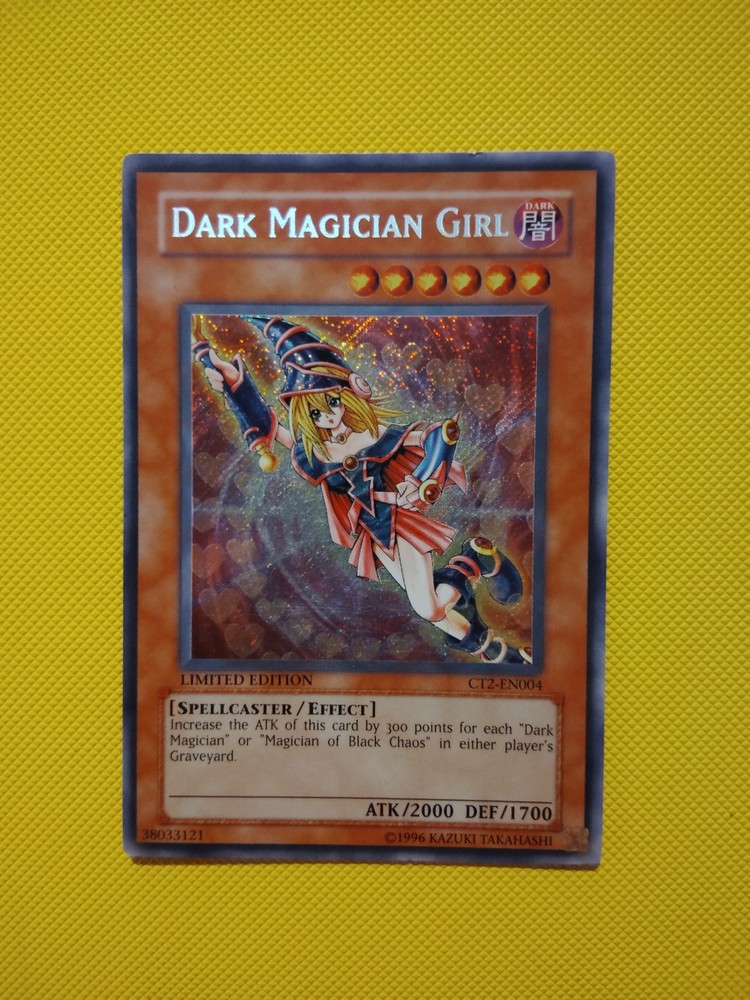 Dive into the mystical realm of Yu-Gi-Oh! TCG with the enigmatic Dark Magician Girl card, a must-have for collectors and duelists alike. Bearing the code CT2-EN004, this Secret Rare, Limited Edition card is a standout piece from Konami, featuring the 1st Edition mark that signifies its exclusivity. The card's theme of Darkness adds a shroud of intrigue to its already impressive allure. With its details presented in English, this Dark Magician Girl card is not just a powerful addition to your deck but also a treasure for those who appreciate the art and history of the Yu-Gi-Oh! trading card game.