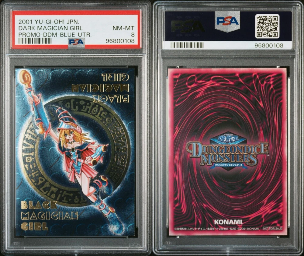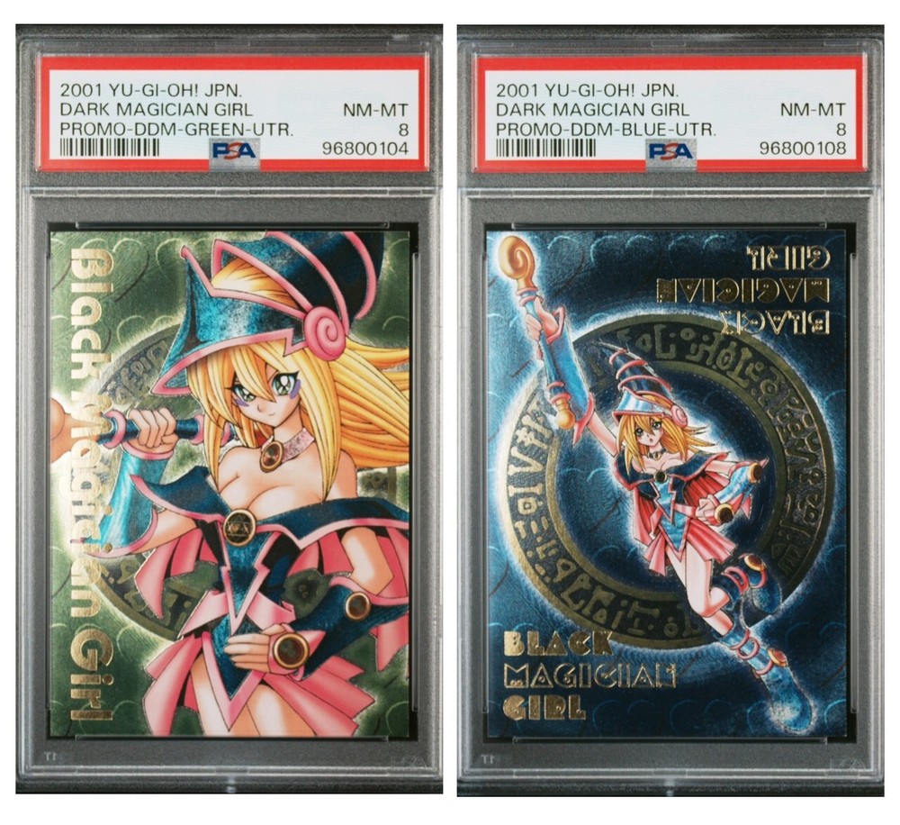 This product is a total of 2 pieces. Condition : PSA8 Yugioh Dark Magician Girl DDM Promo Green Secret Dungeon Dice Monste No.96800104 Yugioh Dark Magician Girl DDM Promo Blue Secret Dungeon Dice Monste No.96800108 Important Notes Import duties, taxes, and any additional charges are not included in the item price or shipping fees. These charges are the buyer’s responsibility. Please check with your country’s customs office to determine what these additional costs will be prior to bidding or purchasing. These fees are typically collected by the shipping company upon delivery or when you pick up the item — please do not confuse them with additional shipping charges. Additional Information This is a vintage collectible. The card has been professionally graded and encapsulated by PSA. The first photo shows the entire item, while the following photos may be close-ups for detail. If any clear plastic display stands or holders are shown in the photos, they are for presentation purposes only and are not included unless otherwise stated. If you purchase multiple items, we may combine them for shipping at our discretion to reduce overall shipping costs. Shipping and Handling Notice The package weight includes the PSA case and all protective packaging materials to ensure safe delivery. We carefully pack each card with bubble wrap and sturdy materials to prevent any damage during shipping. Tracking information will be provided promptly after shipment. Please allow extra time for international deliveries due to customs inspections or local postal delays. If you have any questions or specific shipping requests, feel free to contact us before purchasing.