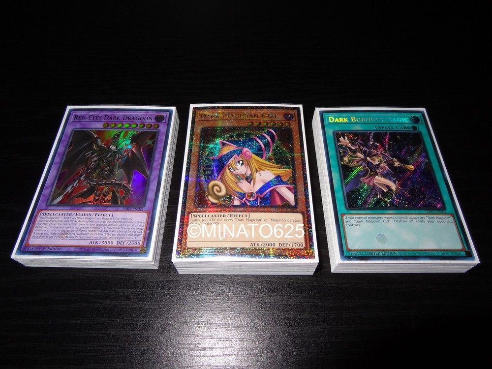 - Item for sale is a Complete 40 Card Dark Magician Girl Deck - Ultra Pro sleeves + deck box included - Please leave a checkout note or message me your color choices (randomly chosen otherwise) 40 CARD DARK MAGICIAN GIRL DECK: Extra Deck Cards (15): 1x The Dark Magicians (Secret Rare) 1x Dark Magician Girl the Dragon Knight (Ultra Rare) 1x Dark Magician the Dragon Knight (Ultra Rare) 1x Red-Eyes Dark Dragoon (Super Rare) 1x Accesscode Talker (Ultra Rare) 1x Selene, Queen of the Master Magicians (Ultra Rare) 1x Artemis, the Magistus Moon Maiden (Ultra Rare) 1x Dharc the Dark Charmer, Gloomy (Ultra Rare) 1x Lyna the Light Charmer, Lustrous (Ultra Rare) 1x Aussa the Earth Charmer, Immovable (Ultra Rare) 1x Eria the Water Charmer, Gentle (Ultra Rare) 1x Wynn the Wind Charmer, Verdant (Ultra Rare) 1x Hiita the Fire Charmer, Ablaze (Ultra Rare) 1x Knightmare Unicorn (Ultra Rare) 1x Knightmare Phoenix (Ultra Rare) Monster Cards (24): 3x Dark Magician Girl (1 Quarter Century Secret Rare) 3x Apprentice Illusion Magician (Ultra Rare) 3x Magicians' Souls (Super Rare) 3x Illusion of Chaos (Super Rare) 1x Timaeus, the United Dragon (Secret Rare) 1x Chocolate Magician Girl (Secret Rare) 1x Berry Magician Girl (Secret Rare) 1x Kiwi Magician Girl (Secret Rare) 1x Apple Magician Girl (Secret Rare) 1x Lemon Magician Girl (Secret Rare) 3x Dark Magician 3x Magician's Rod Spell Cards (14): 1x Dark Magic Circle (Ultra Rare) 1x Dark Burning Magic (Secret Rare) 1x Dark Burning Attack (Secret Rare) 1x Magicians' Salvation (Ultra Rare) 1x Magicalized Fusion (Ultra Rare) 3x Preparation of Rites (Utra Rare) 3x Fusion Deployment (Ultra Rare) 1x Secrets of Dark Magic 1x Dark Magic Attack 1x Monster Reborn (Ultra Rare) Trap Cards (2): 1x Eternal Soul (Secret Rare) 1x Magician Navigation Shipping - I am ready to bring your cards to you as soon as possible and will ship your order off within 1 day of purchase. All orders will be shipped with bubble mailer and a protective case. Purchases made on Saturday and Sunday will be shipped off the following Monday. - All orders will be shipped with Free First Class Shipping (3-5 days) + Tracking! - Priority Mail (1-3 days) and Priority Mail Express (1-2 days) are available as well, shipping price will vary depending on your destination. Payment - Please pay within 3 days of purchasing your item(s) to avoid an Unpaid Item case. This just helps me run things smoothly for other bidders/buyers and myself. Will appreciate if you please leave feedback when you receive your item, and I will leave feedback as well. Contact me if anything is wrong with your order so I can have a chance to fix the issue- Your satisfaction is most important! Thank You! - If you have any questions please do not hesitate to contact me and I will respond as soon as possible. Thank you for taking a look. Have a Great Day!