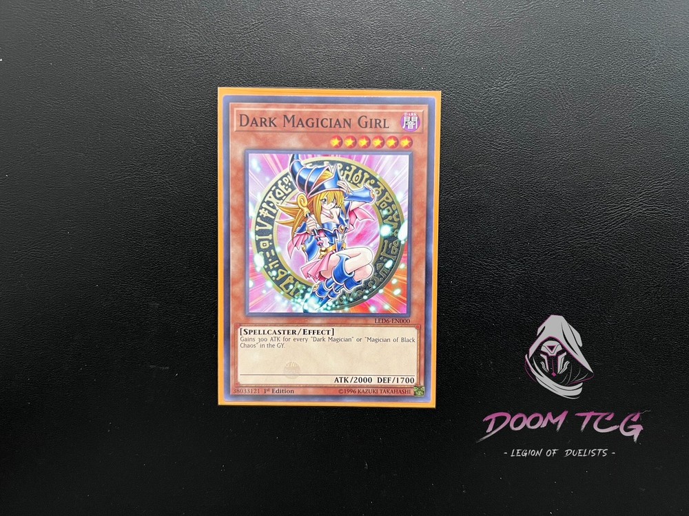 This Yugioh card features the Dark Magician Girl, a Spellcaster Monster Card from the 1st Edition. The card number is LED6-EN000 and it is a Common rarity. It belongs to the Legendary Duelists: Magical Hero set and the Yu-Gi-Oh! TCG game. The card is in English language and manufactured by Konami. The card's features include 1st Edition and it is suitable for ages 6+. The Dark Magician Girl is a popular card in the Yu-Gi-Oh! community and is a must-have for collectors and players alike. Get your hands on this iconic card today!