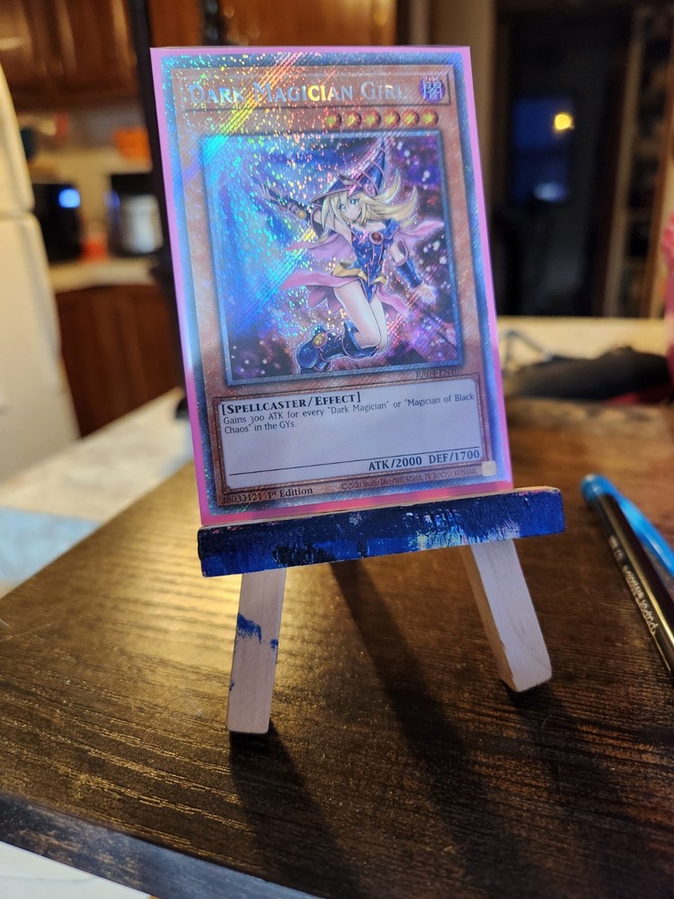 This Yugioh Dark Magician Girl Platinum Secret Rare Alternate Art is absolutely stunning! The artwork pops with vibrant colors, and the holographic finish makes it a true collector's gem. Perfect for fans of the classic series, this card feels premium and looks even better in person. A must-have for any Yugioh enthusiast!