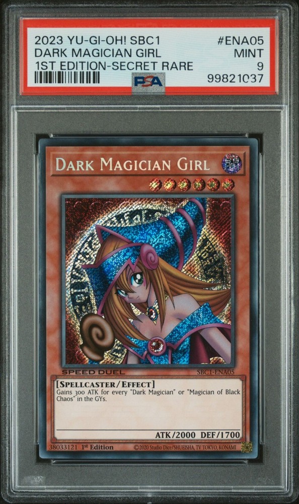 PSA 9 2023 YU-GI-OH! SBC1-SPEED DUEL STREETS OF BATTLE CITY | 1ST EDITION-SECRET RARE SBC1-ENA05 DARK MAGICIAN GIRL