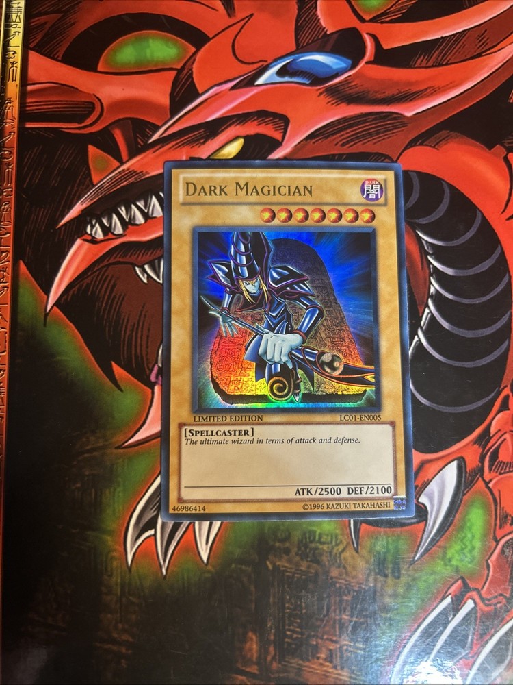 Yugioh Dark Magician LC01-EN005 LIMITED EDITION Ultra Rare. Holofoil artwork, Gold lettering for the name. The card is from the Yu-Gi-Oh!: Legendary Collections 1 Set. The card is lightly played. Card will ship in a white envelope, in a penny sleeve and top loader. We thank you for your business! :) If you would like to buy cards in bulk for a discount, please send me a message with the cards you would like to purchase so we could work out a deal.
