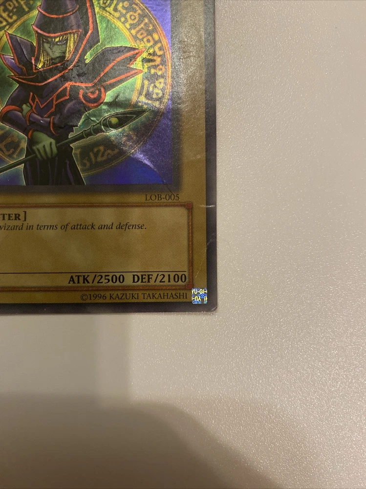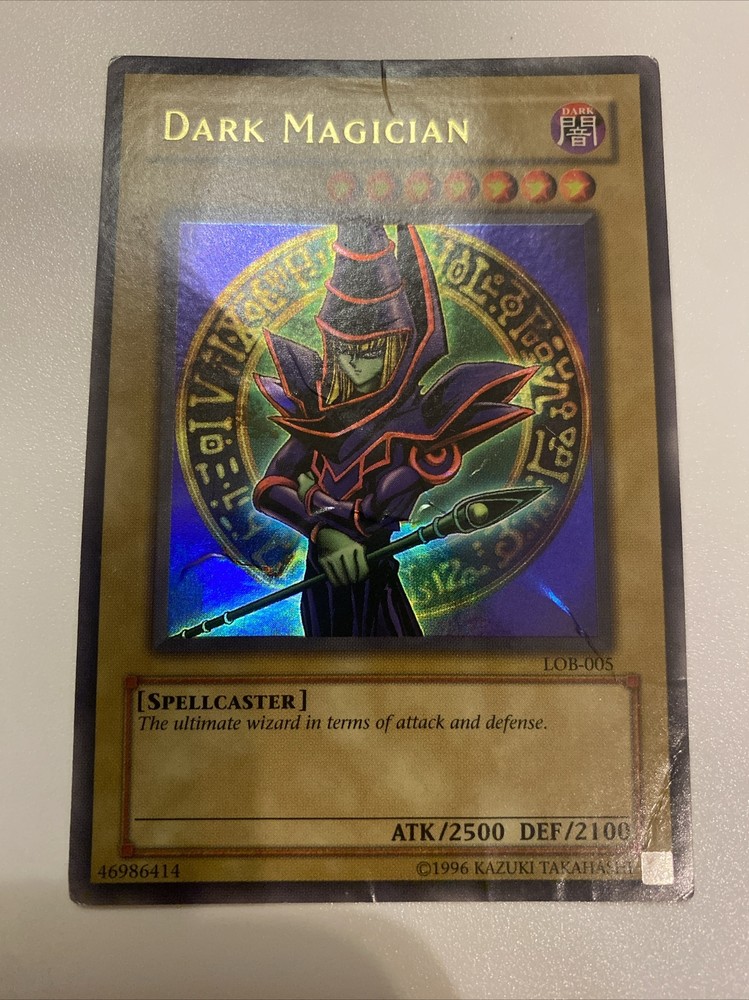 Yugioh Dark Magician LOB-005 OG Print Ultra Rare Holo DAMAGED ***Card is severely damaged and creased in many directions. Please examine photos carefully.*** Please see pictures for condition. Don’t hesitate to reach out if you have any questions or concerns. No lowball offers please. All my cards are 1000% authentic. See my other items for more amazing Pokemon and Yugioh cards!