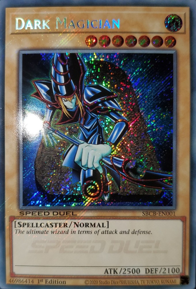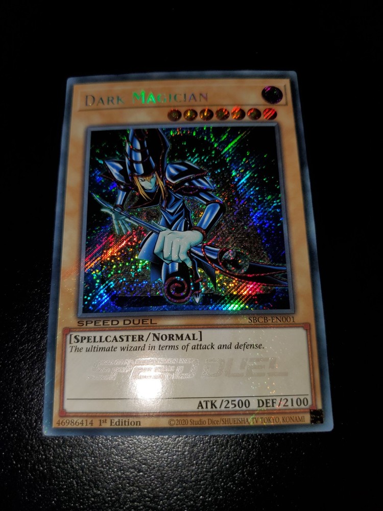 Yugioh Dark Magician SCR 1st Ed. SBCB-EN001 Near Mint Will ship safely & securely through eBay envelope tracking. Penny sleeve inside toploader wrapped in an antiweather and antislip team bag. As a long time seller on eBay, I want every order placed with me to arrive timely and safely. You are entrusting me with your hard earned money and I will not only meet, but surpass your trusted expectations. Feel free to message me for further pictures or questions.