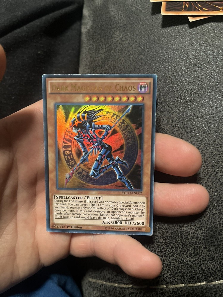 This ultra rare Yu-Gi-Oh! TCG card, Dark Magician of Chaos, is a must-have for any collector. With its stunning artwork and powerful abilities, this card is sure to impress. The card is from the Yugi set and features the character Storm. It has been well-preserved with no creases or damage. The card's color is Darkness, and its rarity is ultra rare. As a fan of the game, you know the value of having this card in your collection. Don't miss out on the opportunity to make it yours. Add this Dark Magician of Chaos to your collection today!