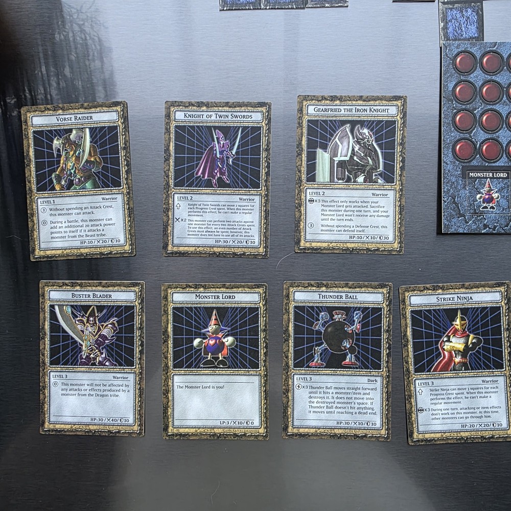 The product is a Yu-Gi-Oh! Dungeon Dice Monsters set featuring English cards with a glossy finish. It includes 7 mint cards and more, with a focus on the Dark attribute and Yami Yugi character. The set is from the 2000 release and is manufactured by Konami in Japan. The cards are in Japanese size and paper material, with a speciality in Dungeon Dice Monsters. This collectible card game set is perfect for fans of Yu-Gi-Oh! looking to enhance their collection with rare and iconic cards.