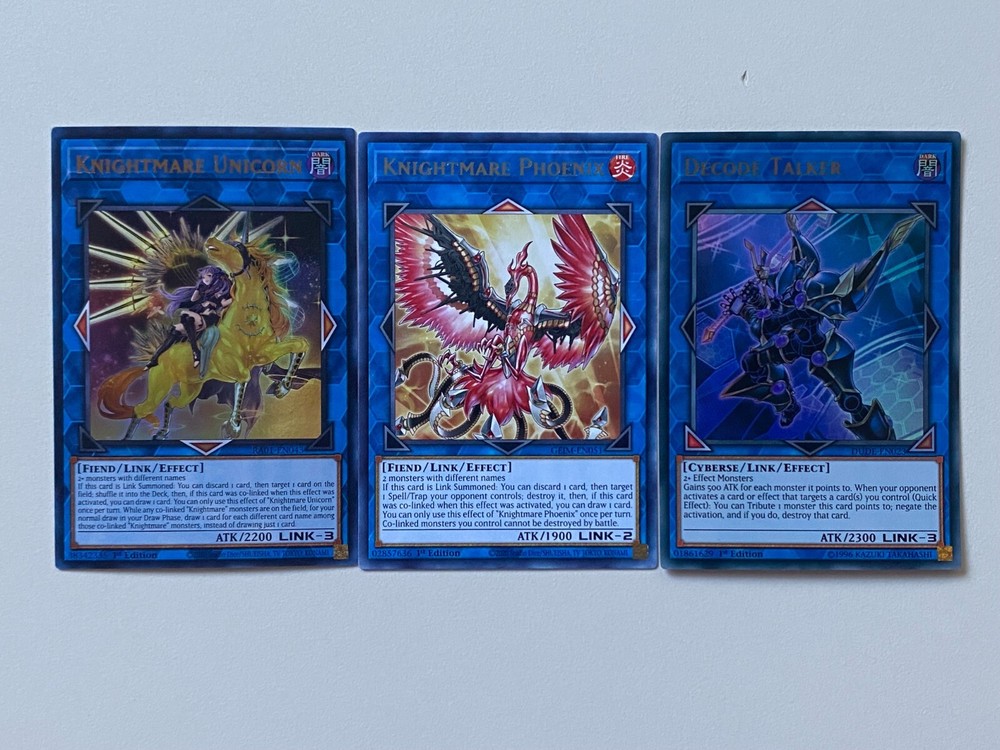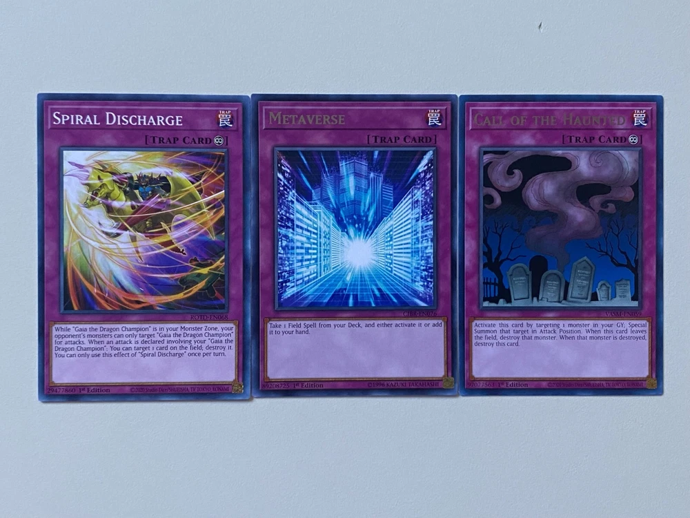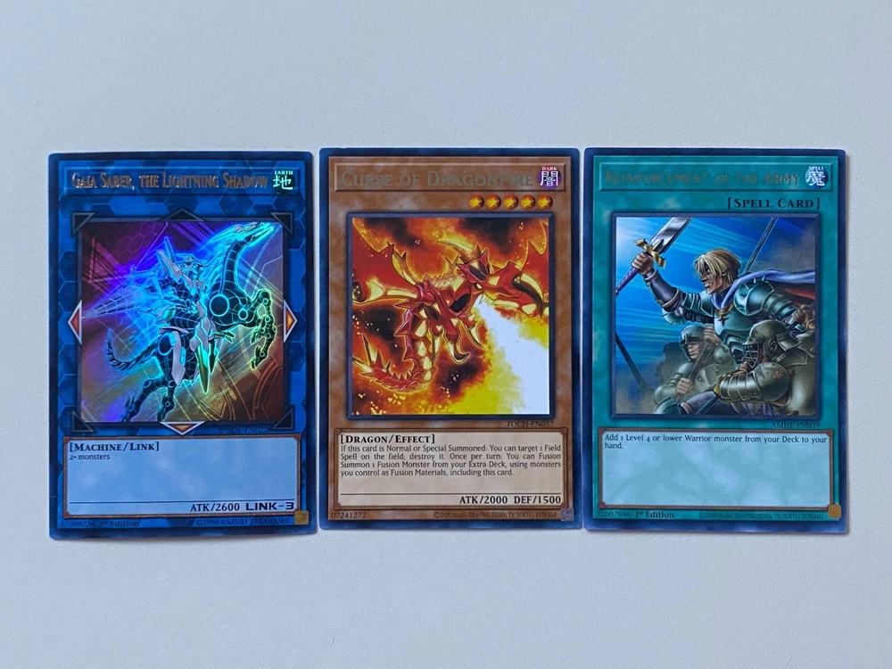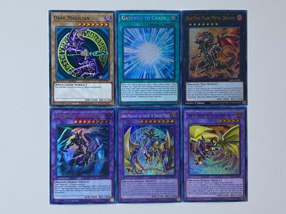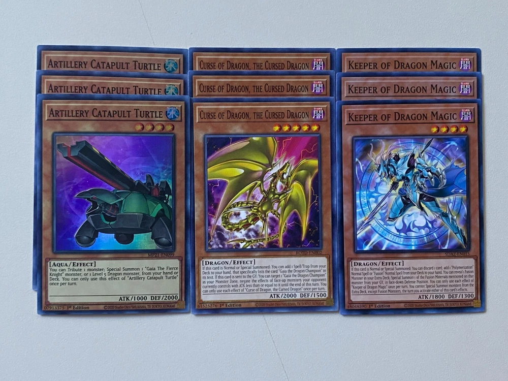 Gaia Deck 55 Cards The cards are in NM condition unless stated otherwise. All cards are authentic and will be 1st, unlimited or limited edition cards. Each card will be sleeved. Also will include a Free Sealed Booster Pack! Deck Information Monsters 3x Artillery Catapult Turtle - Super Rare 3x Curse of Dragon, The Cursed Dragon 1x Curse of Dragonfire - Rare (Lightly Played) 1x Dark Magician 3x Gaia the Fierce Knight Origin - Super Rare 3x Gaia the Magical Knight 3x Keeper of Dragon Magic 2x Soldier Gaia the Fierce Knight Spells 1x Dragon Shrine - Rare (Lightly Played) 1x Dragon's Mirror - Rare 3x Galloping Gaia 1x Gateway to Chaos - Secret Rare 1x Instant Fusion - Ultra Rare 1x Monster Reborn - Super Rare 1x Reinforcement of the Army - Rare 3x Spiral Fusion (2x Rare, 1x Common) 1x Spiral Spear Strike (Lightly Played) 3x Summoner's Art 1x Terraforming (Lightly Played) Traps 1x Call of the Haunted - Rare 1x Metaverse - Rare 1x Spiral Discharge 2x Spiral Reborn Extras 1x Curse of Dragon, the Magical Knight Dragon - Super Rare 1x Dark Magician the Knight of Dragon Magic - Secret Rare 1x Dark Magician the Dragon Knight - Ultra Rare 1x Decode Talker - Ultra Rare 1x Gaia Dragon, the Thunder Charger 1x Gaia Saber, the Lightning Shadow - Ultra Rare 1x Gaia the Dragon Champion (Lightly Played) 3x Gaia the Magical Knight of Dragons (Prismatic Secret Rare)(Lighly Played) 1x Knightmare Phoenix - Rare 1x Knightmare Unicorn - Ultra Rare 1x Red-Eyes Flare Metal Dragon - Ultra Rare 1x Tornado Dragon