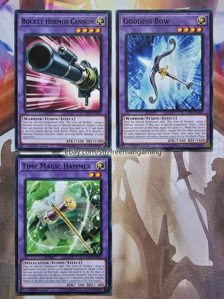 Item Description All cards are in NM Near Mint Condition. All cards included have been used by Joey Wheeler in the TV Show and official Konami Yugioh Video Games. Monsters x25 - 1x Red-Eyes Black Dragon (ultra rare) 1x Summoned Skull 1x Dark Magician 1x Alligator's Sword 1x Baby Dragon 1x Time Wizard 1x Jinzo 1x Gilford the Lightning 1x Little-Winguard 1x Rocket Warrior 1x Giltia the D. Knight Soul Spear (secret rare) 1x Gearfried the Iron Knight 1x Gearfried the Red-Eyes Iron Knight 1x Red-eyes Darkness Metal Dragon 1x Red-Eyes Wyvern 1x Red-Eyes Black Meteor Dragon (super rare) 1x Red-Eyes Black Flare Dragon 1x Red-Eyes Archfiend of Lightning 1x Red-Eyes Soul 1x Red-Eyes Retro Dragon 1x Black Metal Dragon 1x Red-Eyes Baby Dragon 1x The Black Stone of Legend 1x Black Dragon's Chick 1x Lord of Red (secret rare) Spells x9 - 1x Red-Eyes Transmigration 1x Red-Eyes Fusion 1x Cards of the Red Stone 1x Inferno Fire Blast 1x Scapegoat 1x Lightning Blade 1x Dragon Nails (ultra rare) 1x The Claw of Hermos (ultra rare green, purple, or blue) 1x Polymerization (super rare) Traps x6 - 1x Red-Eyes Spirit 1x Red-Eyes Burn 1x Return of the Red-Eyes 1x Kunai with Chain 1x Magical Arm Shield 1x Trap Hole with Spikes Extra Deck x10 - 1x Red-Eyes Flare Metal Dragon (ultra rare) 1x Meteor Black Comet Dragon (ultra rare) 1x Archfiend Black Skull Dragon 1x Red-Eyes Dark Dragoon (super rare) 1x Thousand Dragon 1x Alligator's Sword Dragon 1x Red-Eyes Black Dragon Sword 1x Rocket Hermos Cannon 1x Goddess Bow 1x Time Magic Hammer All items are in mint/near mint condition unless otherwise specified in the title or description. This listing is for the items named in the title and pictured here. What you see in the picture is what you will receive.