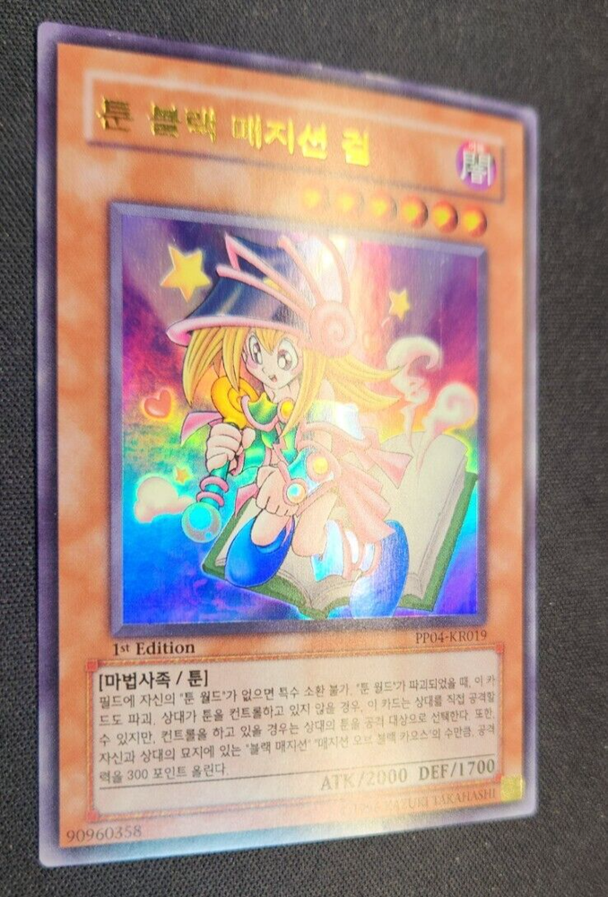 Yugioh! Card Listing Yugioh Korean OCG Toon Dark Magician Girl Ultra Rare PP04-KR019 1st Edition NM Please see above for actual pictures. For any questions or concerns, please contact me and I will address them ASAP. Condition Grading NM / Near Mint - Minimal to no wear; no noticeable bends/rips/folds/edge wear; signs of shuffling/normal use. LP / Lightly Played - May have slight indication of damage, such as a small bend/crease or edge wear. HP / Heavily Played - Significant signs of damage, such as numerous bends across the card or peeling at the edges. Shipping and Handling Orders ship out within 2-3 business days of payment being received, often within 1 business day. All cards are securely sealed inside sleeve + top-loader, safely packed in a bubble envelope. For multiple items, please contact me first to arrange for combined shipping. Domestic eBay Standard Envelope: ~3-7 days, white envelope w/ tracking, default for orders under $20. USPS Ground Advantage: ~2-5 days, bubble envelope, required for orders over $20, tracked/insured. USPS Priority Mail: ~1-3 days, bubble envelope, tracked/insured. International Based on location/weight, sent in bubble envelope w/ tracking. BUYER IS RESPONSIBLE FOR ALL CUSTOMS AND IMPORT DUTIES/TAXES/CHARGES Please give international orders at least 4-8 weeks to arrive! Customs is very slow, and international shipping can often take longer than expected, especially with any shipping service slower than Priority Mail Express. Feedback If what you receive is not as described, please contact me within 3 days of receipt to resolve the issue. Please leave positive 5* feedback if you are satisfied. For anything else, please contact me first (before leaving feedback!) through eBay messaging. Thank you for looking, good luck! ~ A Trove of Mythical Treasures ~
