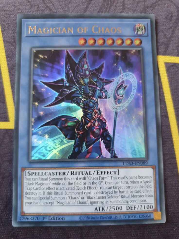 🔥 Yugioh LDS3-EN089 Magician Of Chaos STANDARD Ultra Rare 1ST EDITION This item will be sent in a plastic sleeve/deck protector sleeve and in a toploader for maximum protection. Shipping is FREE! Questions or comments?? Feel free to contact me. I'll get back to you within 24 hours. Check out my eBay store for more Yugioh items!