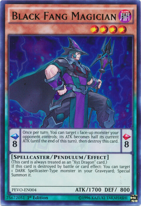 You are bidding on: Yugioh! Black Fang Magician - PEVO-EN004 - Ultra Rare - 1st Edition Condition: Condition: Moderately Played | Language: English All photos are stock, unless mentioned otherwise. Card edition, rarity, etc. are listed in the title and description. Cards are in English unless otherwise stated in title or description. Items will be shipped within 1 business day upon receiving cleared payment. We ship Monday through Saturday in order to get the item(s) to you as quickly as possible Before leaving neutral or negative feedback, please contact us beforehand so we can discuss the issue. Feel free to message me with any questions you have regarding this auction or my policies. Shipping Options: USPS Mail - $0.99 Orders $29.99 (exc. sales tax) and under will be sent in a white envelope in a card saver + soft sleeve using eBay's Standard Envelope tracking service. Orders $30.00 (exc. sales tax) and over will be sent with free USPS tracking information w/ toploader + soft sleeve. Priority Mail - $9.99 2-3 Day shipping Orders will be shipped in a flat rate envelope in a toploader + soft sleeve. Priority Express Mail - $29.99 1-2 Day shipping Orders will be shipped in a flate rate envelope in a toploader + soft sleeve. *All orders over $100 will be sent with free insurance. All orders over $250 will be sent with free insurance and signature confirmation.* Card Grading: Near Mint (NM) - Cards with this grade will show minimal to no wear from shuffling, play or handling and can have a nearly unmarked surface, crisp corners and unblemished edges outside of a few minimal flaws. Holographic cards are more scrutinized than non-holo cards. Lightly Played (LP) - Cards with this grade may have a few dings, light playwear and/or edgewear. A crease or bend is acceptable if it is less than approximately 1/2 inch in size and is only visible on one side. Moderately Played (MP) - Cards with this grade may have dings, playwear and/or edgwear, 1 or 2 creases or bends that do not go through the length of the card. Heavily Played (HP) - Cards with this grade may have dings, playwear and/or edgwear, creases or bends that may go the length of the card, markings and/or coloring, tears on the edges. Despite being the lowest of grading, these cards are still tournament legal. If you receive a card not in the stated condition, please contact us to return the item for a full refund. Thank you for buying.