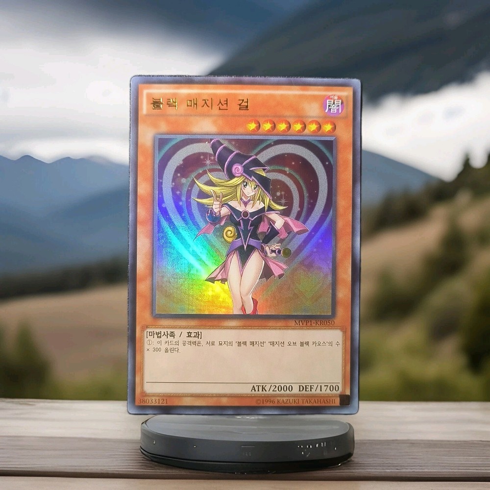 The product is a Yu-Gi-Oh! Dark Magician Girl Ultra Rare card from the 25th anniversary set. This Korean language card features the character Dark Magician Girl as a Monster type with a high attack strength. It is a foil card with a holo finish and includes alternative art, making it a highly sought-after collectible for fans of the Yu-Gi-Oh! TCG. The card is signed by Yugioh Konami and is in near mint or better condition, making it a valuable addition to any collection. Fast US shipping is available for this rare and special card.