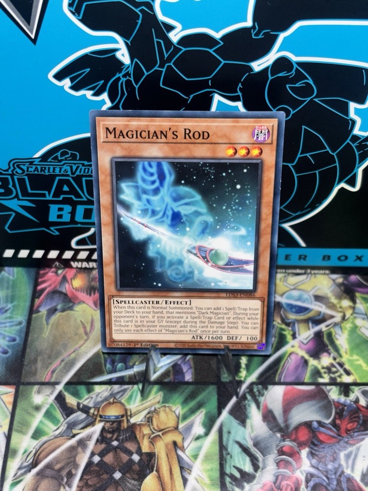 Magician's Rod x 3 1st Edition The cards are in NM condition. Also will include a free Holographic card which can be a rarity of Super, Ultra, Secret, etc! Card Information When this card is Normal Summoned: You can add 1 Spell/Trap from your Deck to your hand, that specifically lists the card "Dark Magician" in its text. During your opponent's turn, if you activate a Spell/Trap Card or effect while this card is in your GY (except during the Damage Step): You can Tribute 1 Spellcaster monster; add this card to your hand. You can only use each effect of "Magician's Rod" once per turn. Number: LDS3-EN086 Rarity: Common